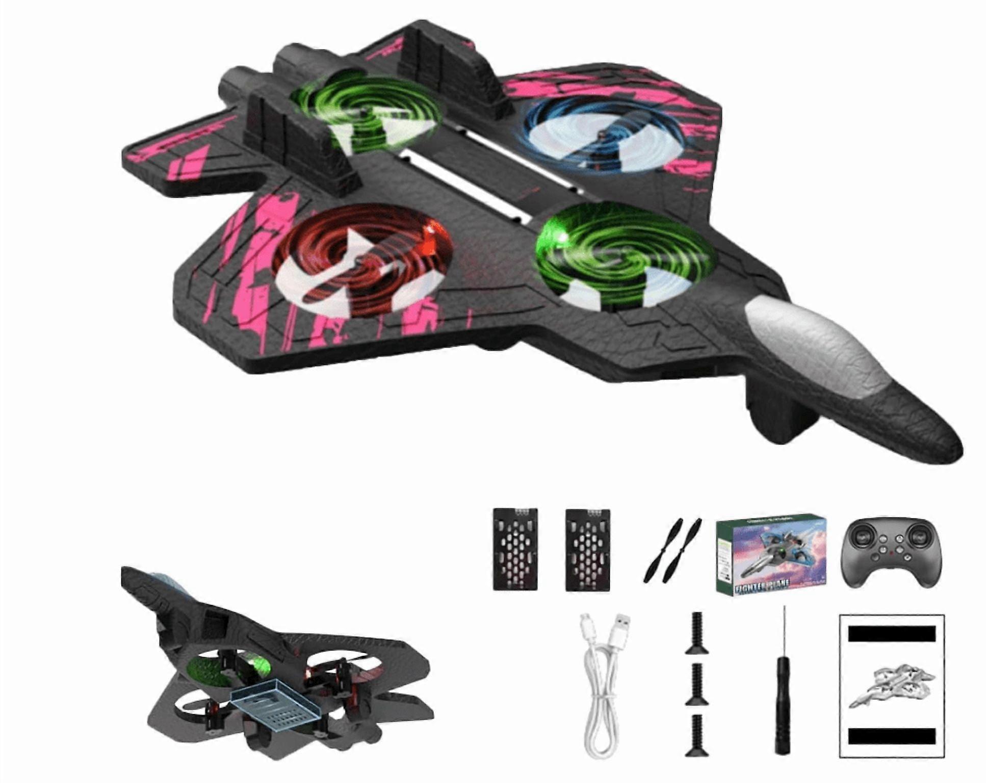 ✈✈【Beginner-Friendly Dual-Speed RC Plane】Features easy-to-switch slow and fast modes—perfect for young pilots learning to fly or older kids craving high-speed action. Smooth control builds confidence while keeping fun at the forefront 🎉【360° Stunt Flips for Thrilling Airshows】Pull off jaw-dropping mid-air flips with the press of a button! This aerobatic feature boosts hand-eye coordination and keeps kids engaged for hours—indoors or in calm outdoor spaces 🔥【Ultra-Durable Foam Build for Crash-Proof Play】Made from lightweight yet impact-resistant EPP foam that bounces back from walls, floors, and tumbles. Designed to survive real-world play so the fun lasts all season (and beyond) 🏡【Realistic Jet Design That Wows Aviat-ors】Sleek, detailed aircraft styling sparks imagination and appeals to future pilots and aviation fans alike—making it a standout under the tree or in a birthday gift haul 🎁【Smooth Flight with Spinning Propellers & Easy Control】Responsive remote and rotating propellers deliver stable, intuitive flight dynamics—even for first-time flyers. No complex setup: just charge, pair, and soar in minutes ✈✈360° Aerial Stunts: Experience exciting 360° flips and rolls with this RC airplane, bringing non-stop flying fun and skill challenges to every flight. 🎉Vibrant LED Lighting: Bright LED lights illuminate the sky with colorful effects, making flights more dynamic and eye-catching, even in dim conditions. 🔥Easy Flight Control: Designed for beginners and young pilots, the intuitive remote controller ensures smooth takeoffs, stable flight, and easy operation. 🏡Durable & Lightweight Design: Built from tough, impact-resistant materials that handle minor bumps and crashes, extending playtime and performance. 🎁Indoor & Outdoor Flying Fun: Perfect for both indoor halls and open outdoor spaces, this RC plane offers hours of creative, imaginative aviation play for kids and families alike.