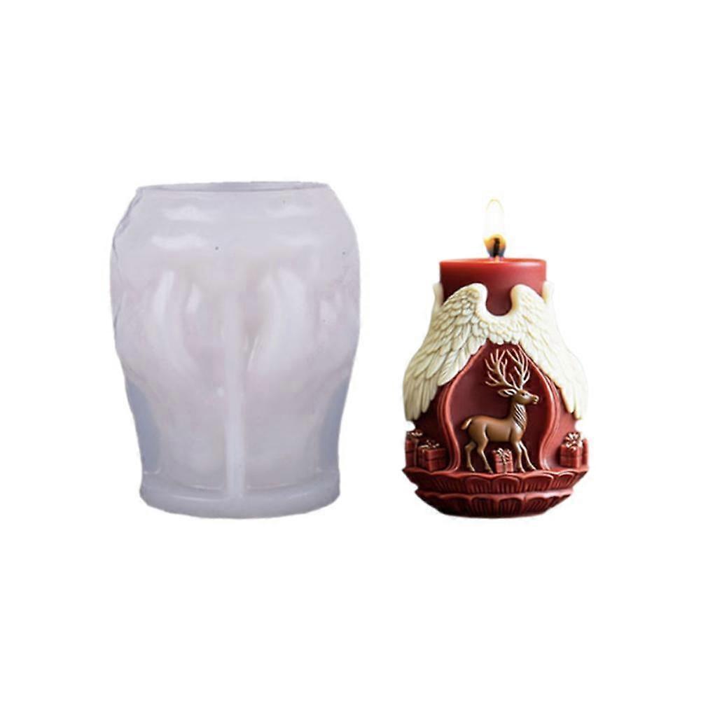 Christmas Elk Santa Claus Cylinder Candle Silicone Molds, Silicone Casting Mould for DIY Candle Making Polymer Clay Craft Plaster