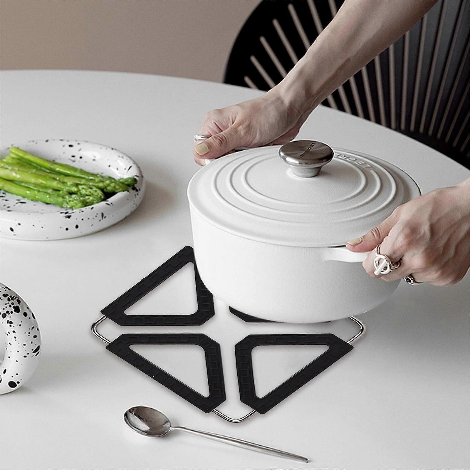 Stainless Steel Foldable Pot Mat, Heat Resistant Placemat, Table Protector for Countertops/Stovetops/Dining Tables, Pack of 2, Black, by FAJHHA