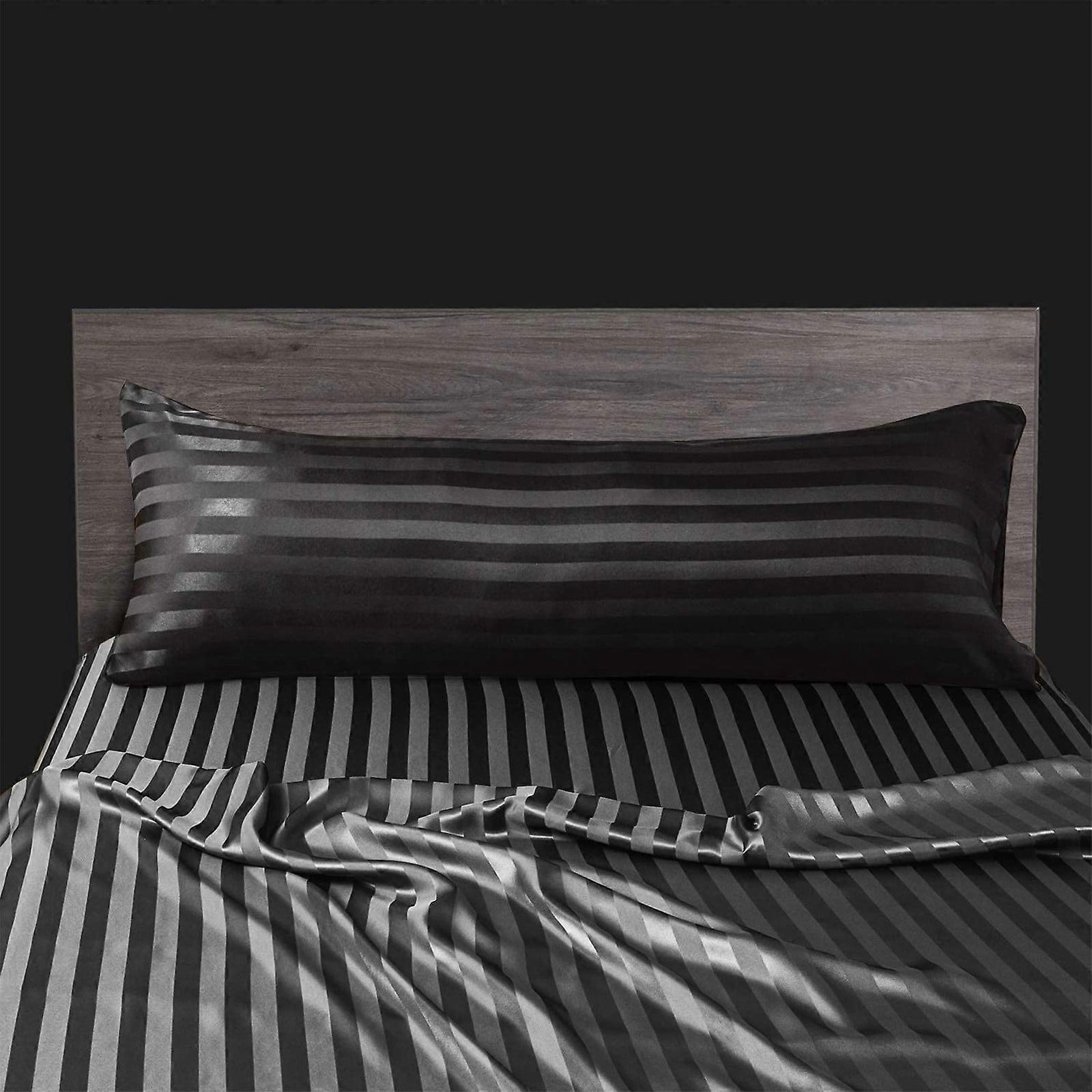 Silk Satin Body Pillowcase 20x54", Ultra-Soft Microfiber with Envelope Closure, Luxurious Striped Cover for Elegant Bedding – Black