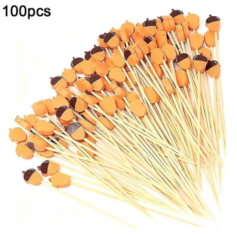 Specification Material: bamboo Style: Thanksgiving Individual size: 12 cm/4.72inches (1 inch = 2.54 cm) Features Material: bamboo, smooth without burrs, safe and reliable material, not easy to decompose, can be used for a long time EASY TO PUNCH AND PLATE: Pointed bamboo cocktail sticks can easily pierce food without breaking and help to hold ingredients together; single markers, easy to use, make dishes look more delicate. SIZE: Our bento chopsticks are compact and lightweight, suitable for a wide range of foods such as vegetables, fruits, snacks and desserts, suitable for both girls and boys, or as a gift for children. CONVENIENT: Can be used once, helping to minimize the cleanup time needed after an event, party or restaurant kitchen. WIDE APPLICATION: Suitable for cocktail parties, ice parties, winter parties,Halloween, Thanksgiving, Christmas, weddings, birthdays, banquets, anniversaries, family or outdoor celebrations, offices, bars, clubs and more. Package includes 100pcs* fruit bamboo sticks 1. Premium Bamboo Material: Crafted from smooth, burr-free bamboo that’s safe,, and long-lasting, ensuring reliable use without easy decomposition. 2. Effortless Piercing & Plating: compatible with Sharp-tipped cocktail sticks easily penetrate food without breaking, securely holding ingredients together—ideal for elegant plating and single-labeling. 3. Compact & Versatile Size: Lightweight and portable, perfect for veggies, fruits, snacks, or desserts; suits all ages and makes a fun gift for kids. 4. Disposable & Time-Saving: Designed for one-time use to reduce cleanup after events, parties, or kitchen prep, offering unmatched convenience. 5. Multi-Occasion Use: Great for cocktail parties, holidays (Halloween/Christmas), weddings, birthdays, offices, bars, and outdoor celebrations—universal appeal!