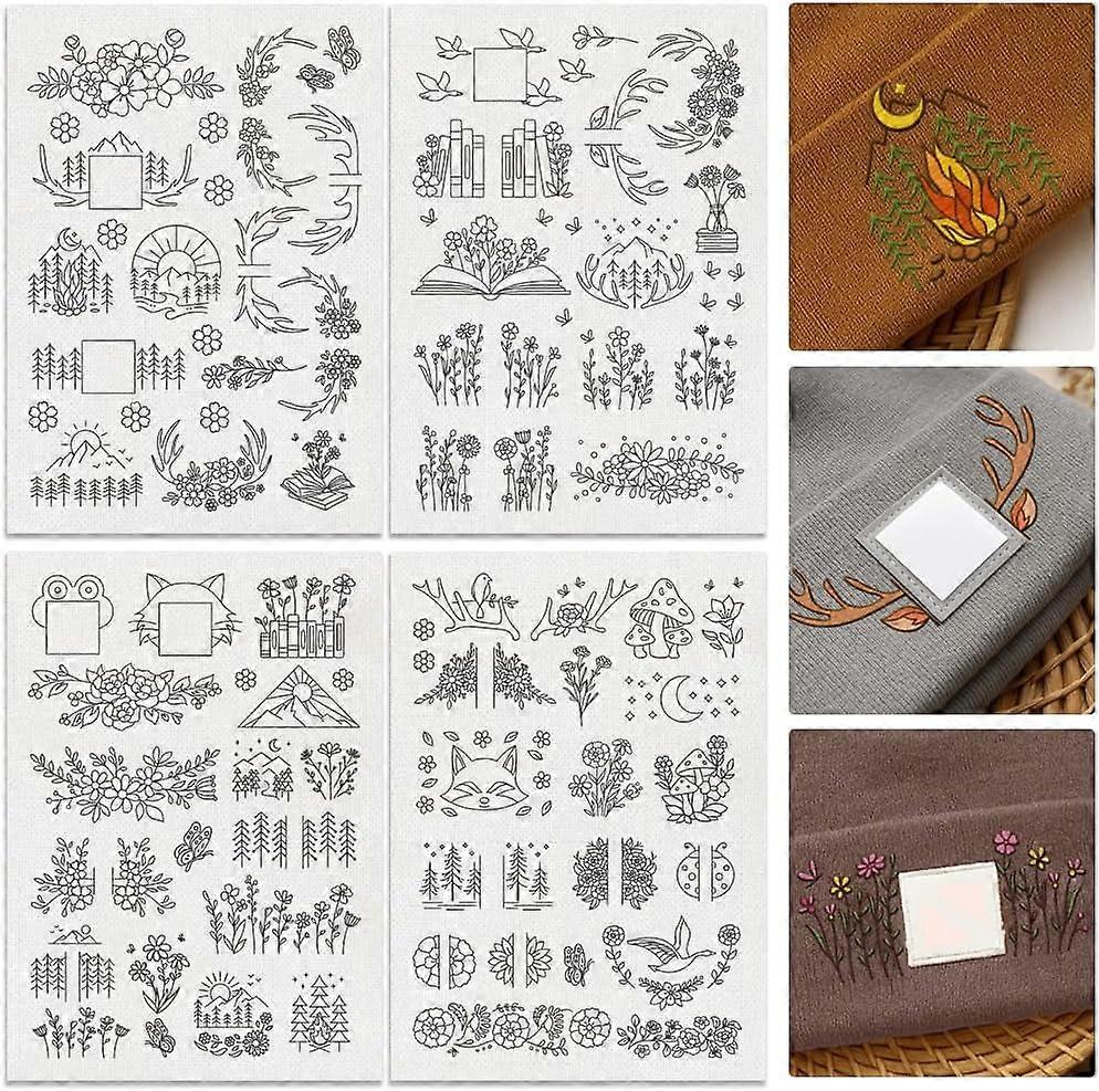 56Pcs Mountain Flower Vine Embroidery Pattern Stabilizer 8.3"x11.7", Compatible with Stick & Stitch, 4 Sheets, Water-Soluble DIY Embroidery Paper