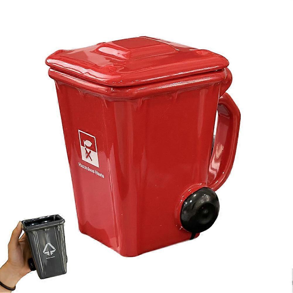 Mini Trash Can Mug – Funny Ceramic Recycling Bin Coffee Cup with Lid, Compatible with Daily Use & Unique Gifts