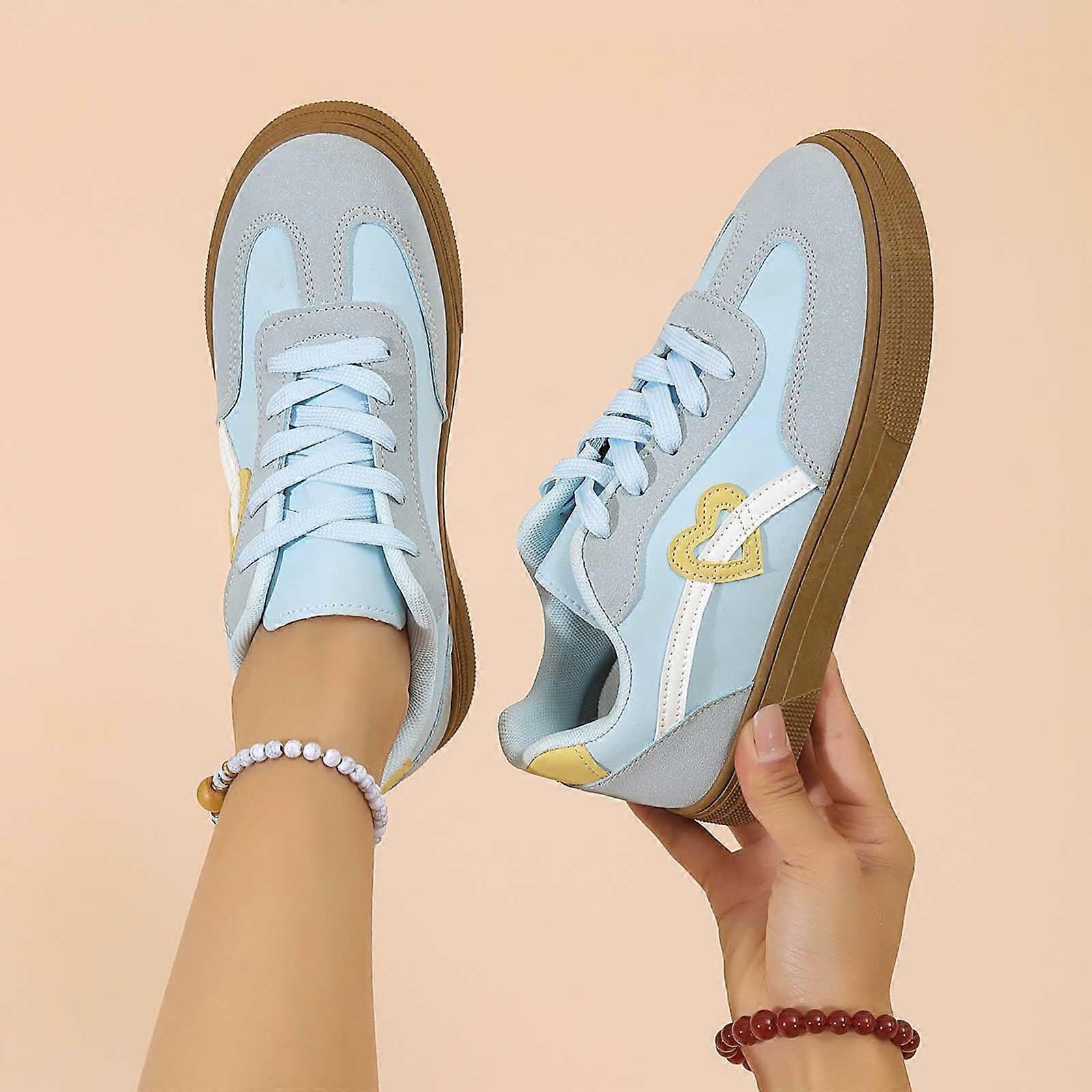 Suede Lace Up Flat Casual Shoes Comfortable Loafers For Daily Walking And Outing Light Blue 41