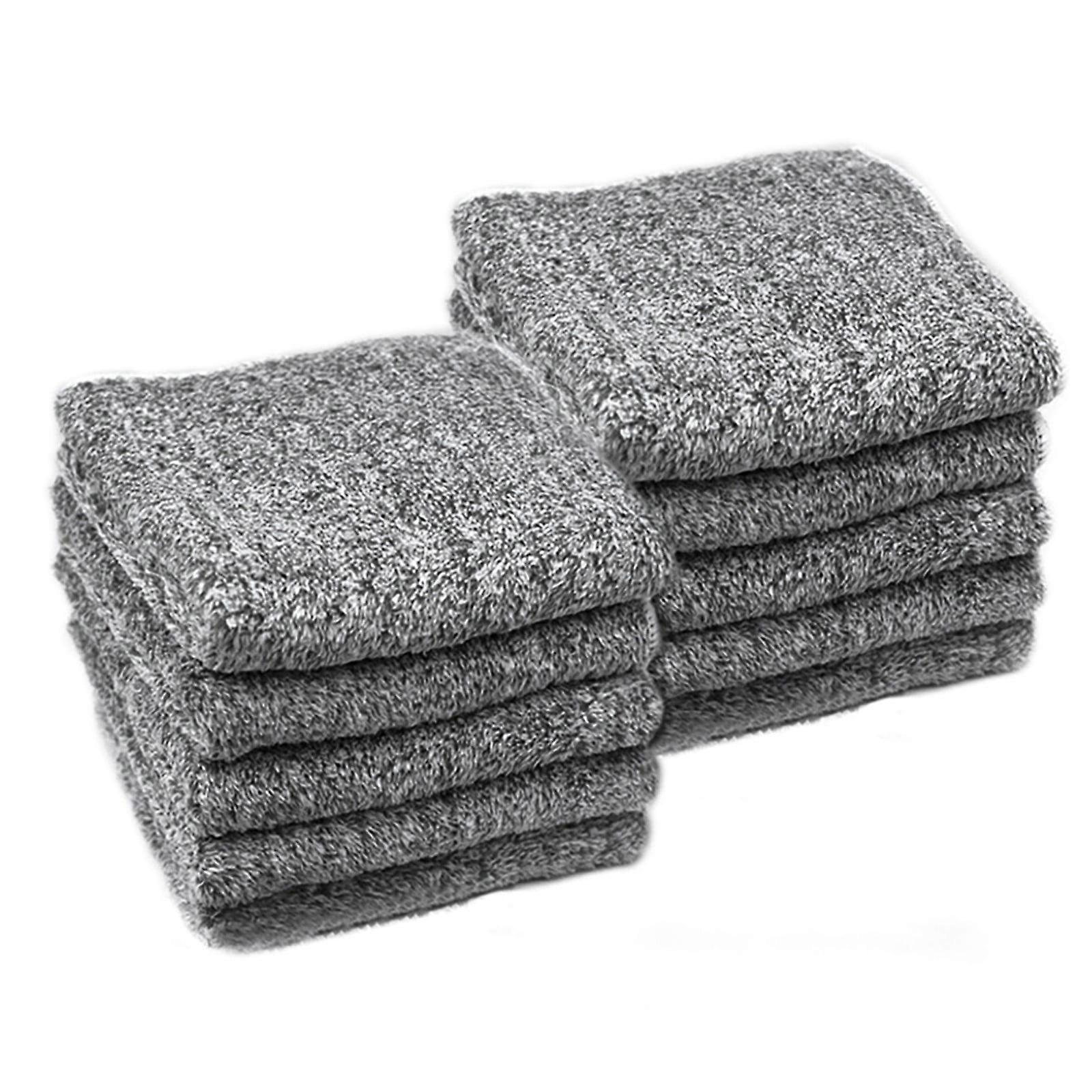 10pcs Microfiber Kitchen Cloths (25x25cm) – Waffle & Coral Velvet, Bamboo Charcoal, Oil-Cleaning, Non-Stick, Compatible with All Surfaces