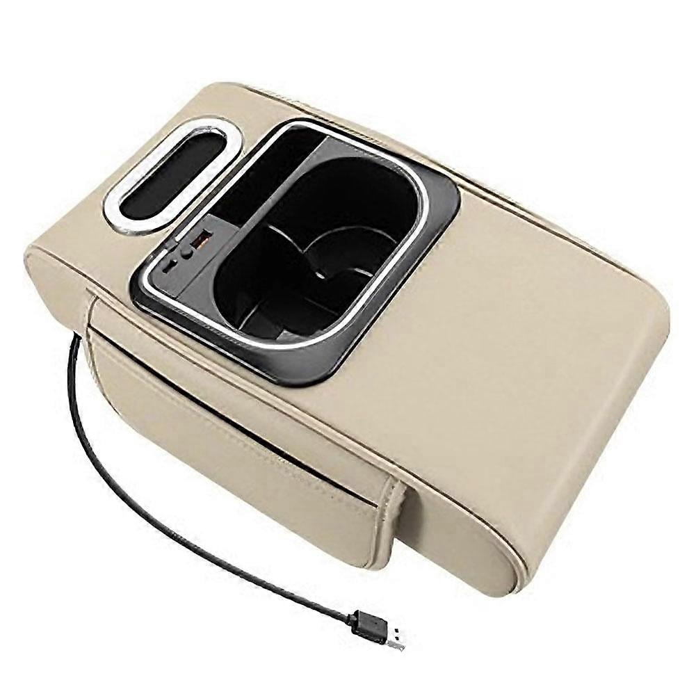 Description Multi-functional design: Built-in tissue box holder, cup holder, ambient light, and USB charging interface for mobile devices Storage solution: Increase the height of the handrails while providing additional storage space for car essentials and personal items High compatibility: Compatible most vehicle models, providing a multi-functional solution for enhancing automotive interiors Easy to install: No assembly is required. Just place it on the existing armrest console and use it immediately Compact dimensions: 14.6 inches in length, 8.7 inches in width, and 4.3 inches in height, optimizing space efficiency Built-in USB and Type-C interfaces The armrest box height pad can help you relax your arms Open the armrest box easily without affecting its opening It's convenient to carry a tissue when driving The light can follow your favorite color and be freely adjusted The packaging includes: 1*Armrest box heightening pad MULTIFUNCTIONAL CAR ORGANIZER DESIGN – Combines car organizer, car armrest organizer, and automotive center consoles upgrade into one unit with armrest storage box, extra cup holder for car, built-in charging ports, and ambient for a cleaner, smarter interior CAR ARMREST STORAGE BOX WITH HEIGHT SUPPORT – This car armrest box raises arm rest for car to a more comfortable height while offering spacious storage for daily essentials, transforming unused console space into a practical center console organizer EXTRA CUP HOLDER & CUP HOLDER EXPANDER – Designed with car armrest cup holder and car cup holder expander to securely hold drinks of different sizes, keeping beverages stable and within during daily driving or long trips AMBIENT LIGHTS & PREMIUM FEEL – Soft car cup holder lights paired with a sleek leather car armrest enhance nighttime visibility while adding a modern, upscale touch to your car interior UNIVERSAL FIT & EASY ACCESS – This multifunctional arm rest for car fits most vehicles, installs easily without tools, and allows smooth access to the original armrest box without blocking console functions