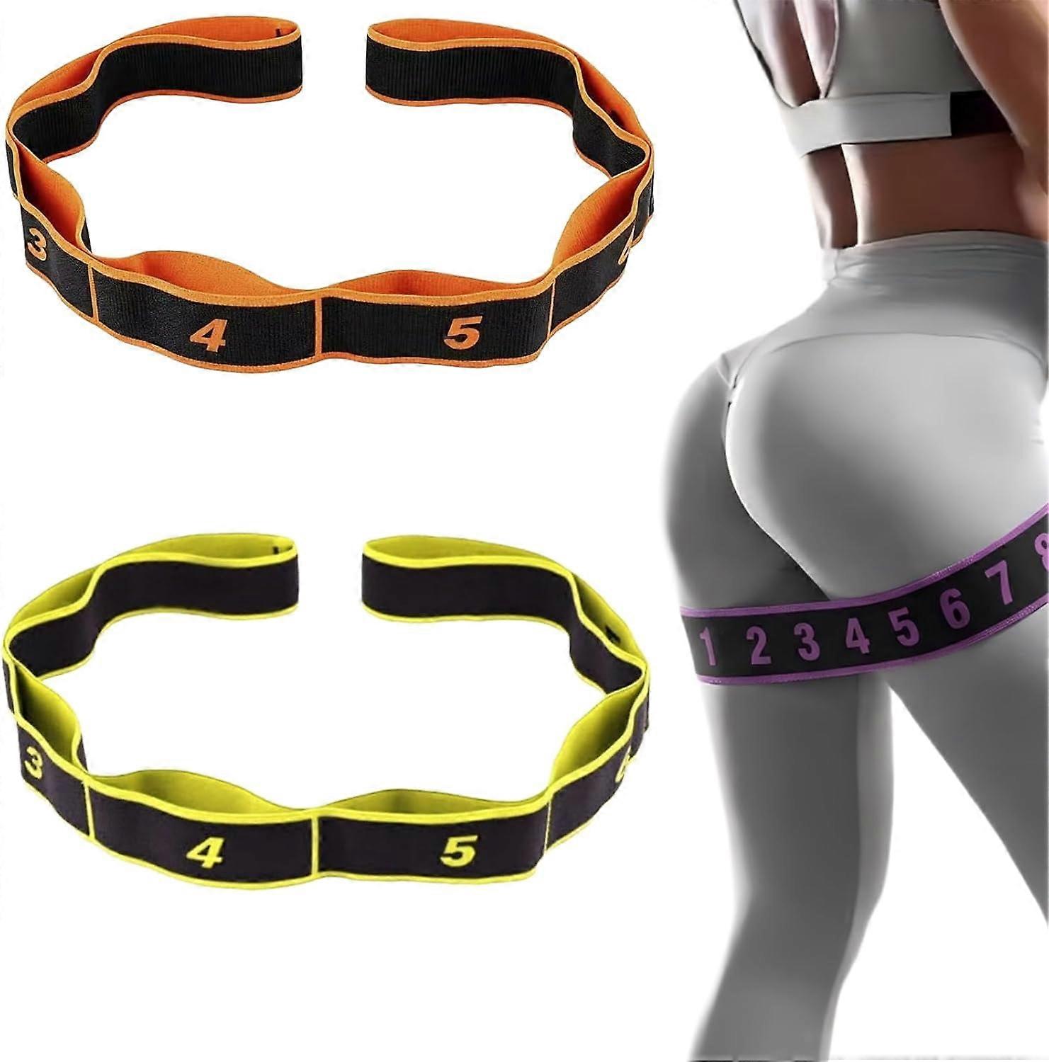 2PCS Numbered Resistance Bands, 8-Section Elastic Bands for Yoga, Stretching, Pilates, Fitness – Compatible with All Standard Routines