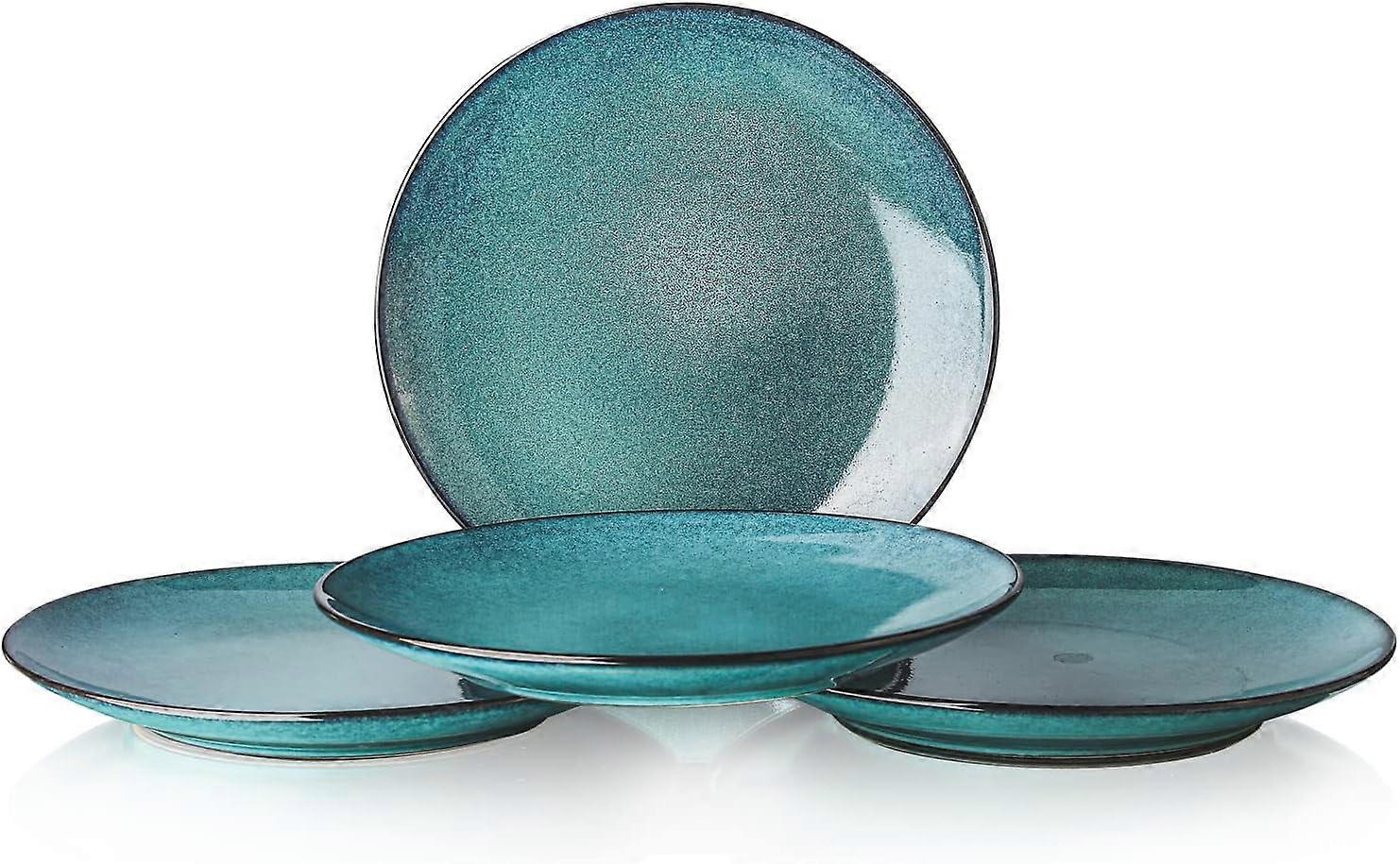 10 Inch Dinner Plates Set, Porcelain Serving Dishes for Salad, Pasta, Dessert Microwave, Dishwasher Safe Plates Set of 4 - Reactive Green
