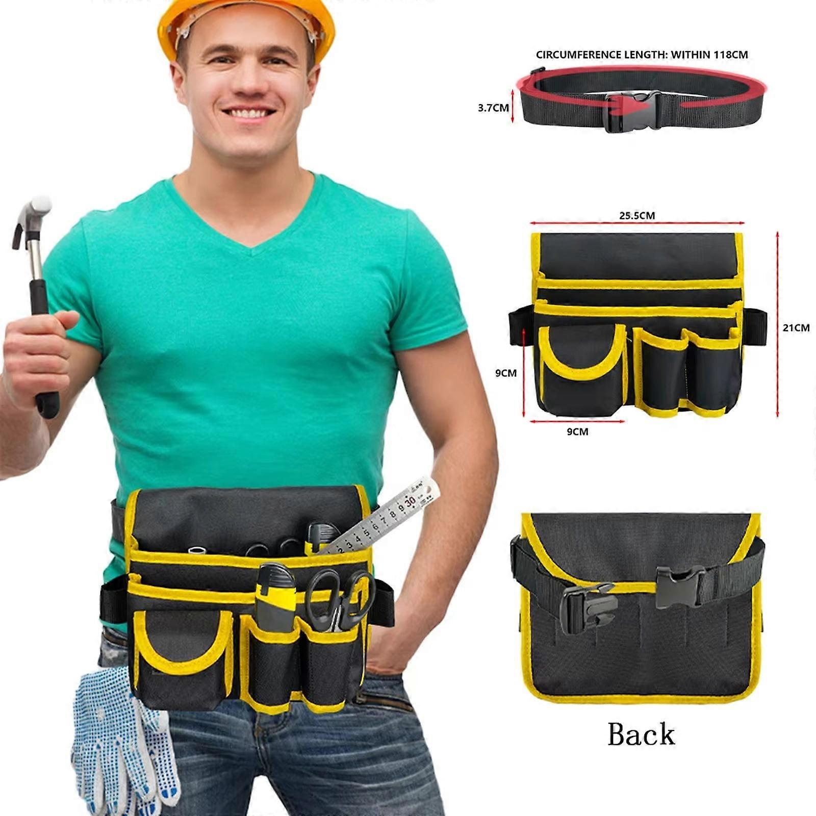 Multifunctional Tool Storage Bag Pouch Belt Electrician Drill Waist Bag Screwdriver Hardware Tool Bags Organizer Specification: Quantity: 1 PC Tool BagPerfect Fit for Tools Storage: Our tool bag is designed for outdoor and woodworking use, featuring a multi-functional design to store hardware tools of different sizes. Made of top-notch materials, it ensures a secure and stable storage effect, adapting to various working environments. The waist-worn design allows easy carrying and quick access to tools, improving work efficiency. This tool bag is suitable for scenarios: outdoor field maintenance work, home hardware tasks, woodworking projects in workshops, construction operations, or camping equipment emergency fixes. It meets the tool storage needs of workers and DIY enthusiasts.Gender: UnisexItem Type: Multi-Functional Tool Storage Bag Durable water-resistant material construction with reinforced seams ensures lasting durability for outdoor and repair applications Spacious multi-pocket layout with tool loops provides organized storage for wrenches, pliers, tape measures, and small hardware components Ergonomic waist belt design with padding offers comfortable support during extended outdoor work sessions and construction projects Perfect for garden maintenance, outdoor repairs, and construction tasks creating efficient tool organization for electricians, plumbers, and carpenters Versatile carrying solution makes this organizer ideal for outdoor enthusiasts and professionals who require portable hands-free tool access