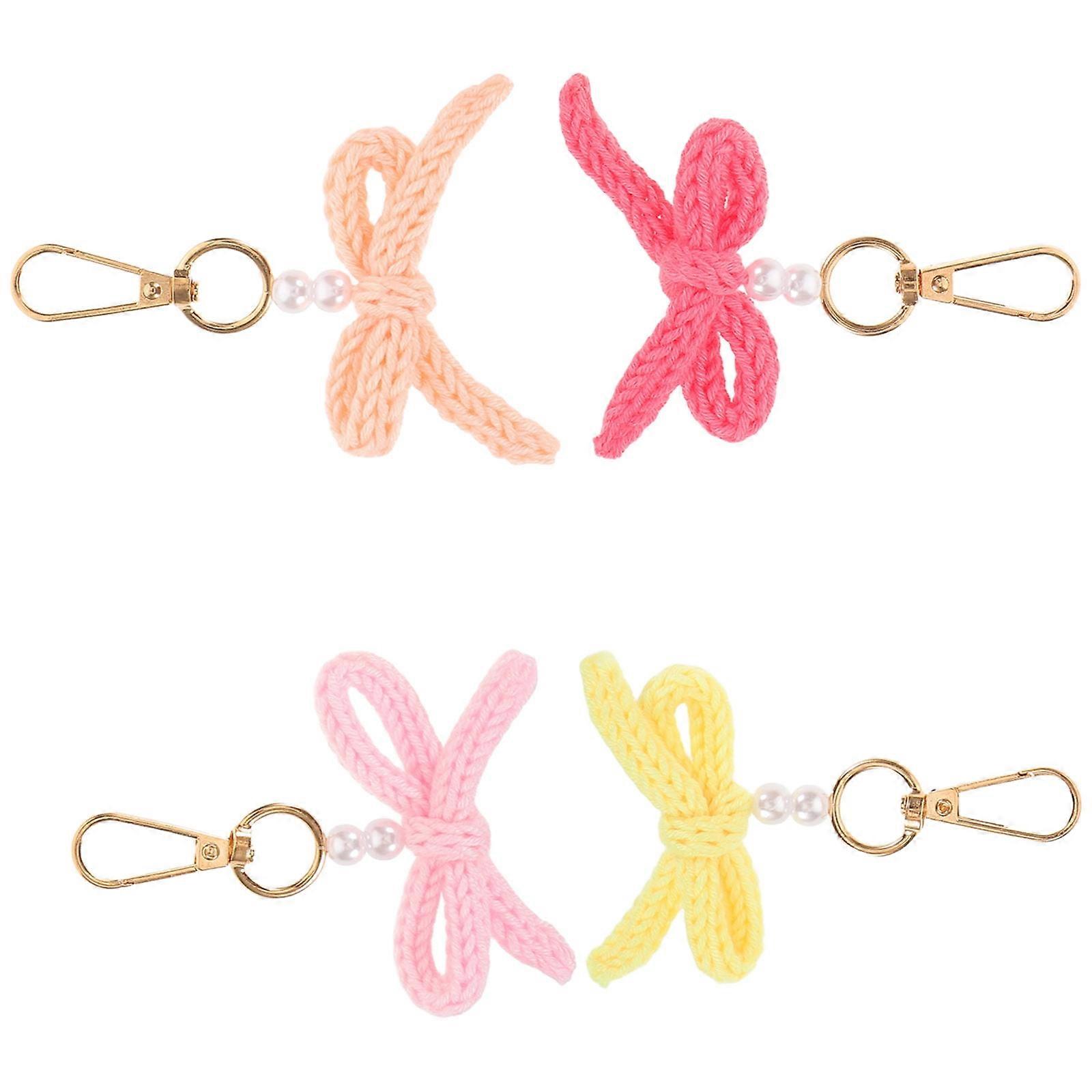 Elegant Multi Color Knitted Bow Keychains for Decoration Durable Crochet Keyring with Imitation Size 4pcs