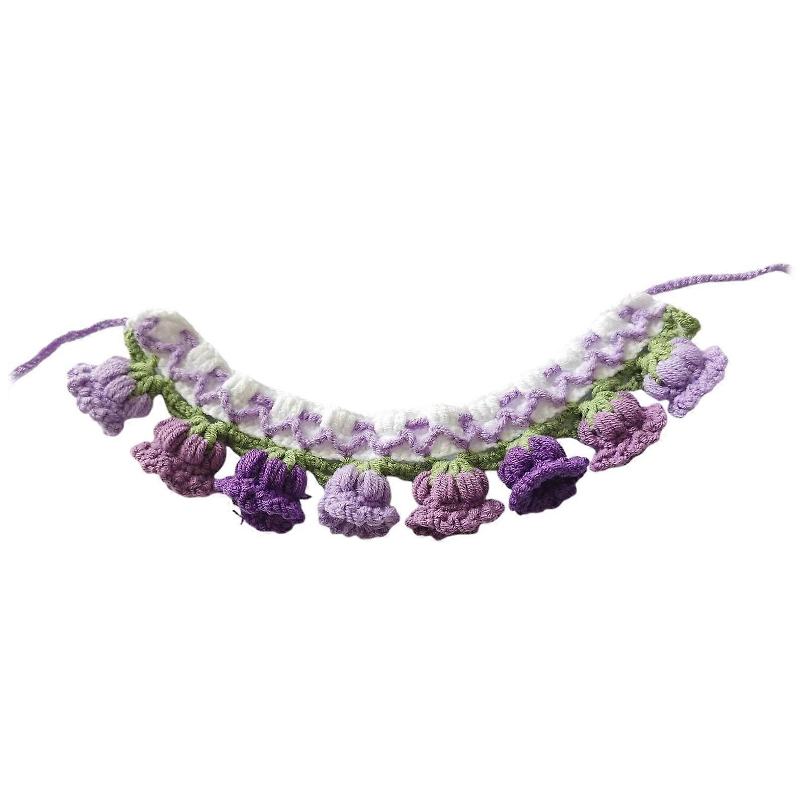 Hand-Knitted Pet Scarf with Bell Flowers, Adjustable Cozy Dog Bib Collar for Photoshoots, Festival & Birthday Gifts, XS