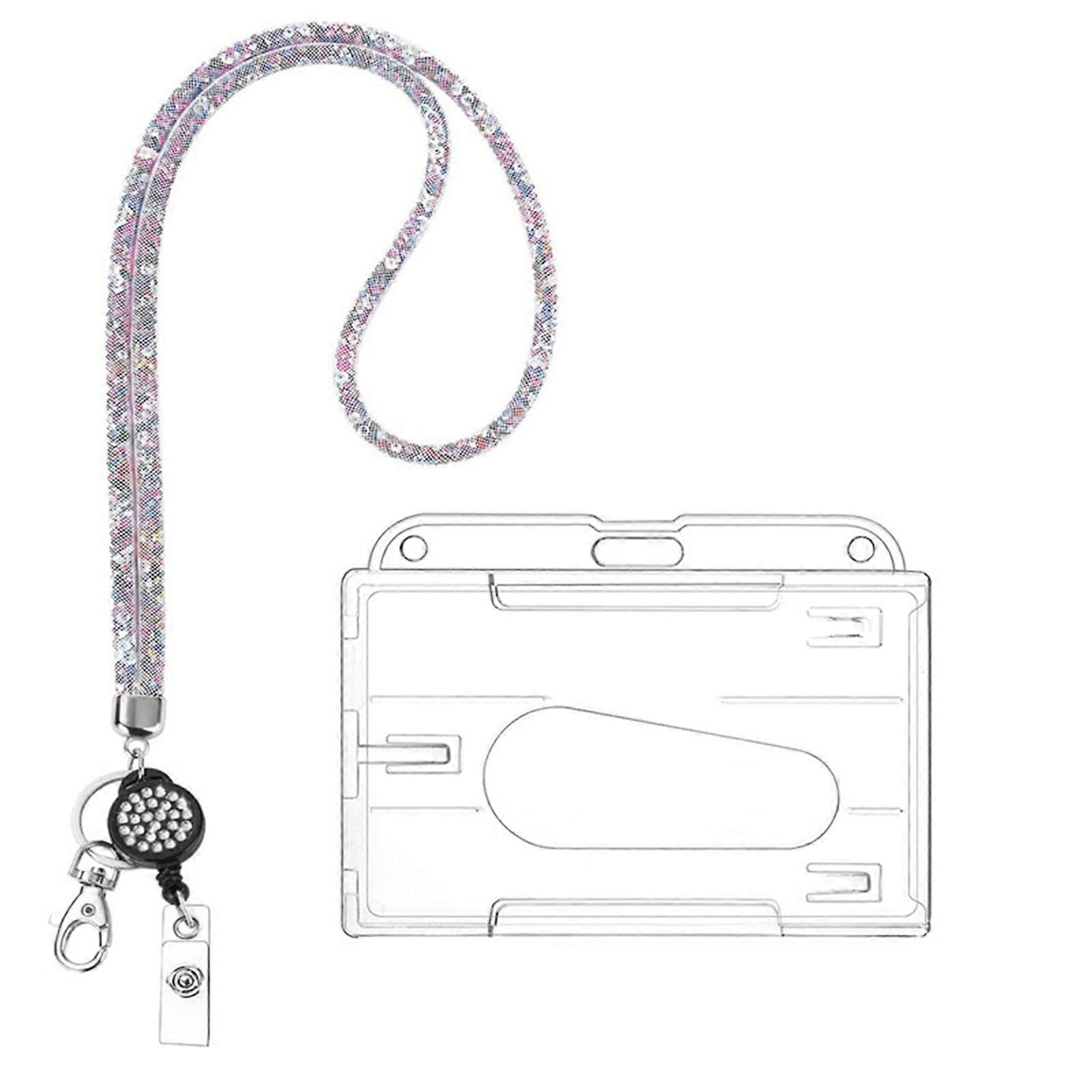 Keychain Lanyards Cute Lanyard Neck Lanyard Strap for Women Kids Teacher Keys Wallet ID Badge Card Holder (Please allow 1-3mm error due to manual measurement. please make sure you do not mind before ordering.) Solid Clip & Card Holder. The carabiner badge reel clip is solid and can be easily clipped on your pants, belts, pockets. and each reel comes with a vertical PC clear badge holder, which is really perfect for your IDs, key rings and work badges. Bling Lanyard with Badge Holder. Our neck lanyard is embellished with sparkling rhinestones, with 1 bling retractable reel and 1 clear id card holder can hold your keys & id card well, really shiny and stylish. Multifunctional Design. You can attach not just keys, ID cards but also small tools like pliers, nail clippers, pocket knives, flashlights, multi-tools and more. It's the perfect tool for nurses, office staff, teachers, factory workers, employees, contractors, outdoor enthusiasts and etc. Forceful Contractility. Our badge reel can hold about 6 keys plus your ID badge and not slide down. Each reel with a keyring and ID holder strap, keep all your keys and ID badge in one place that is easily accessible. The ID Badge Holder Is Great Gift Choice For Party,exhibition,giveaway,gifts.