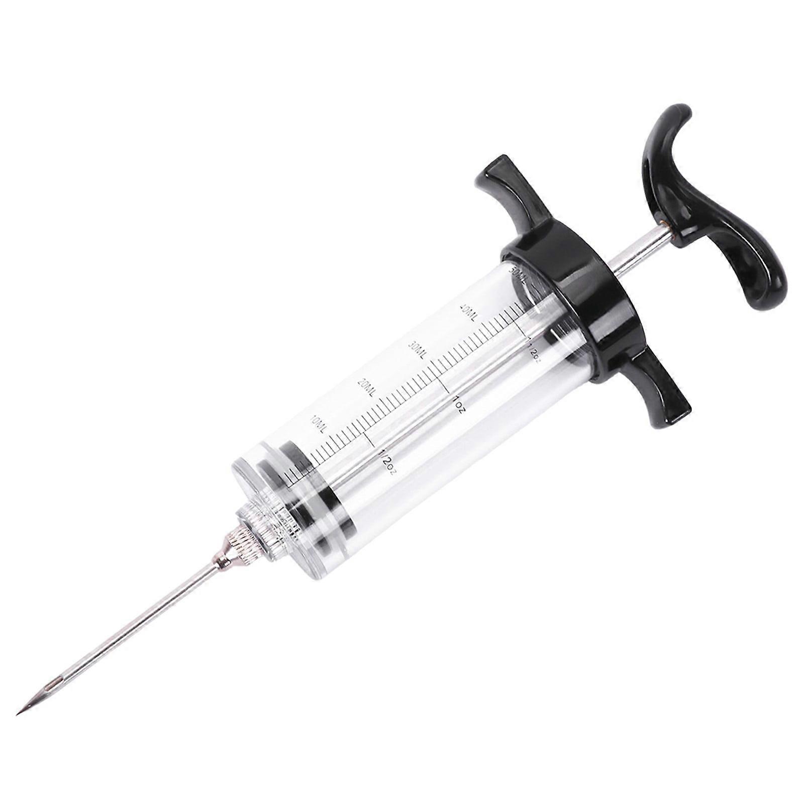 1-oz Meat Injector Syringe Kit w/ 2 Stainless Needles – BBQ, Turkey & Beef, Black, compatible with marinade injectors