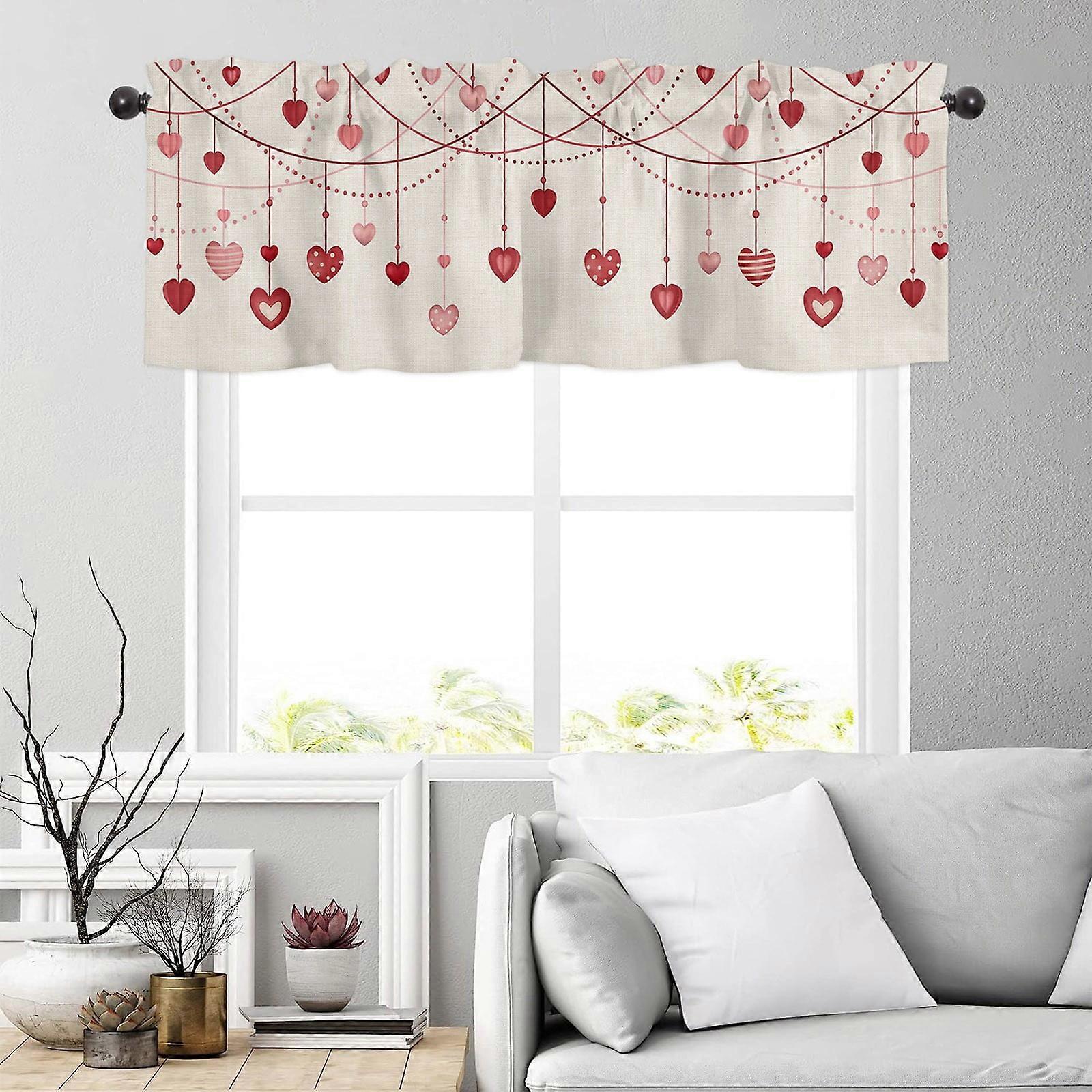 Valentine's Day Window Valance with Gnomes & Hearts, 54x18", Pink/Red, Rod Pocket – Compatible with Standard Rods