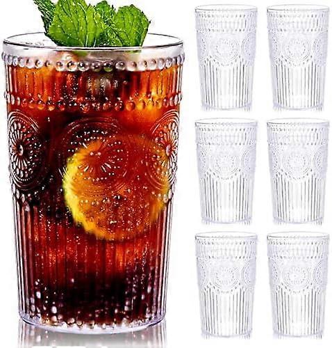 12-Pack 14oz Romantic Ribbed Plastic Water Glasses, Vintage Textured Cups for Juice, Beer, Cocktails – Compatible with Dishwashers