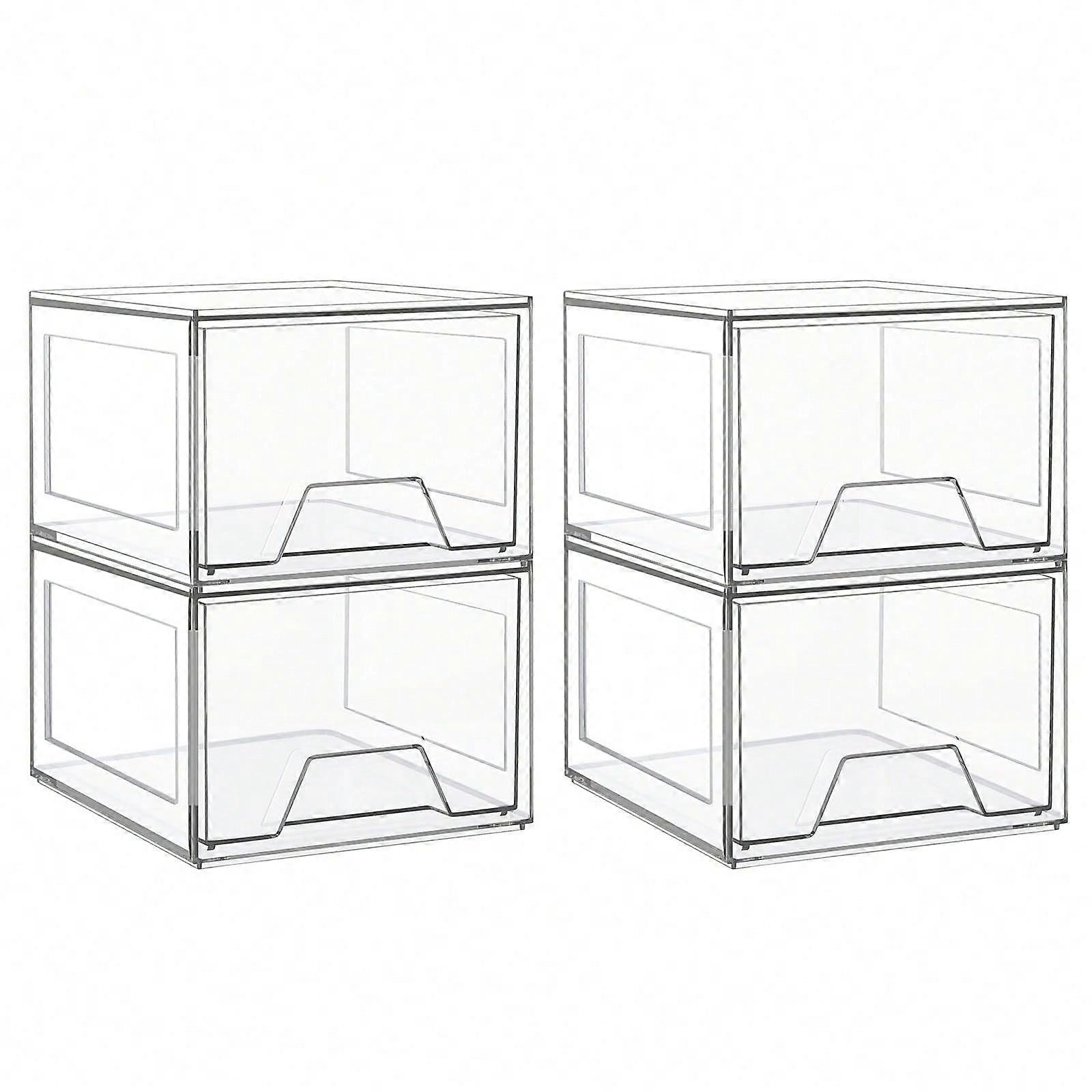 Stackable Acrylic Makeup Organizer, 4.4" Tall Clear Drawer Storage Bins for Vanity, Undersink, Cabinets & Pantry