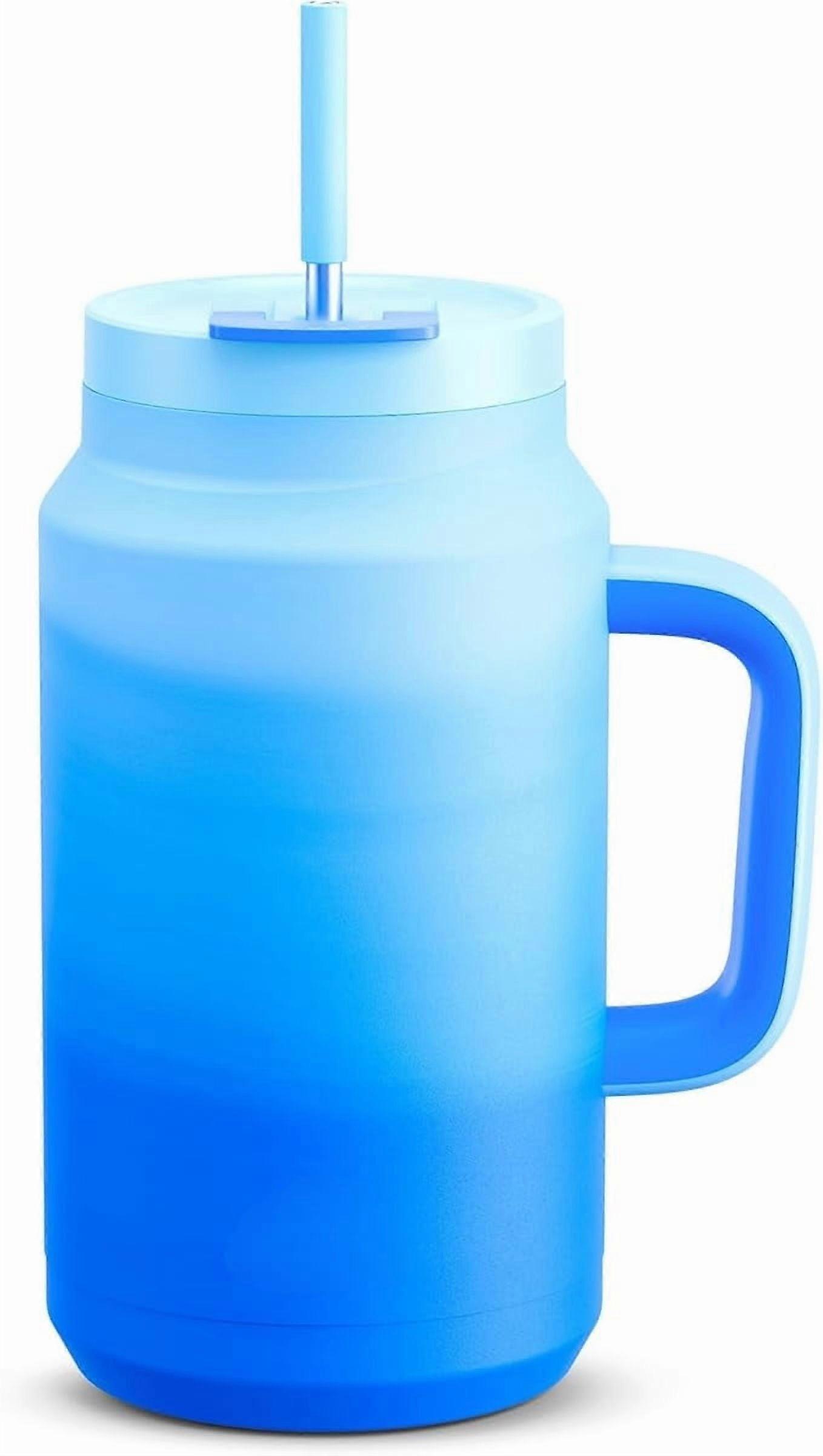 50 oz Leak-Proof Insulated Tumbler with Handle & Straw, 2-in-1 Lid, Stainless Steel, Non-slip Base, BPA-Free