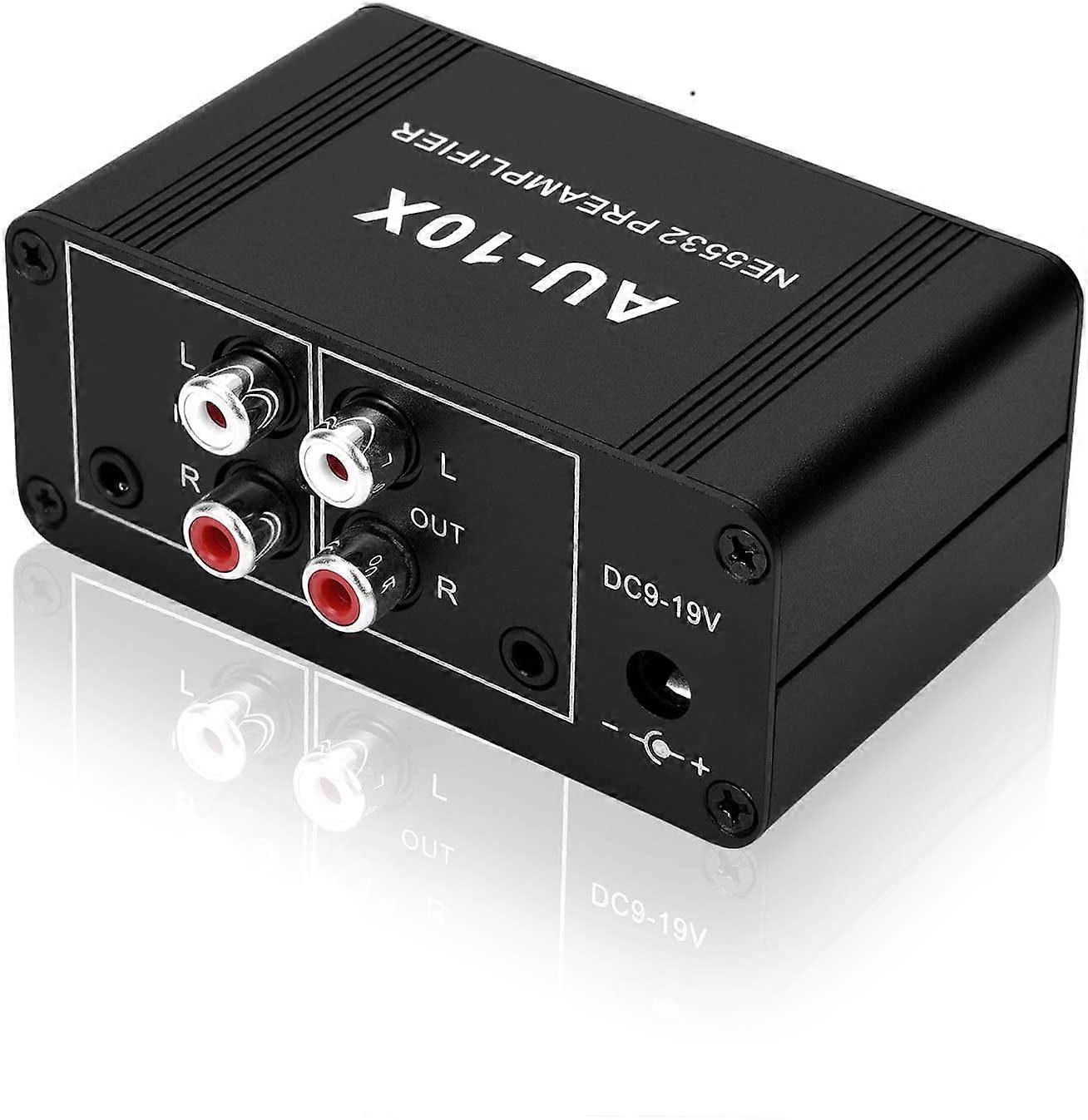 Mini Stereo Preamp w/20dB Gain, NE5532 Dual Op-Amp, RCA & 3.5mm I/O, Compatible with Phono Turntables