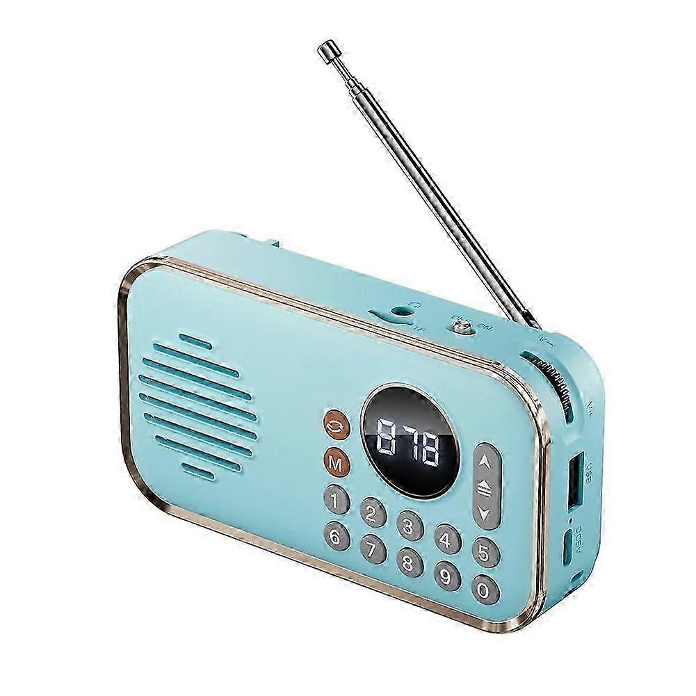 Portable FM Radio with Bluetooth Speaker - Rechargeable, 1200mAh Battery, Stereo Sound in Blue