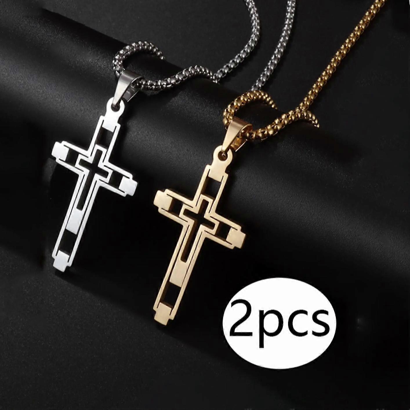 Men's Pendant Necklace Set, Hollow Cross Hip-Hop Stainless Steel, 2-Piece