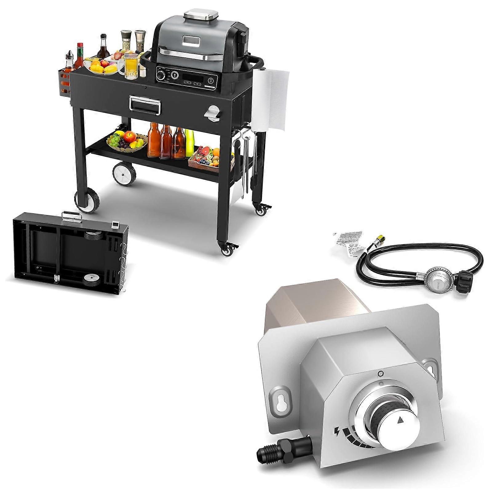 Portable outdoor grill table cart with gas burner attachment, compatible with Ooni Karu 12 and Ooni Fyra 12 (with included gas converter). Designed to turn a portable pizza oven into a convenient, stable, and mobile outdoor cooking station. Key benefits Converts a 12 inch pizza oven for easier gas operation, reducing setup time and giving precise fuel control when needed. Raises the oven to a comfortable working height and provides a stable platform for safer cooking. Adds dedicated workspace and organization for tools, ingredients, and serving, keeping everything within easy reach. Universal design fits 12 inch portable pizza ovens and is supplied with a gas converter to adapt Ooni Fyra 12 models to the gas burner. What it does Stable cart platform: Holds a 12 inch pizza oven securely and provides a flat, accessible surface for loading and unloading pizzas. Gas burner attachment: Mounts directly to the cart to operate the oven from a gas source; designed to work with Karu 12 and adapted for Fyra 12 using the included converter. Accessory storage and workspace: Creates a single station for cooking, preparation, and serving. Compatibility and sizing Built for 12 inch portable pizza ovens. Compatible with Ooni Karu 12. Includes a gas converter that makes the burner attachment usable with Ooni Fyra 12. Practical attributes Portable design for outdoor use and transport to different cooking locations. Converts charcoal or woodonly ovens to gascompatible operation when used with the burner and converter. Streamlines pizza cooking by combining oven mounting, fuel connection, and prep space in one unit. Use scenarios Backyard pizza night: Set up the oven on the cart to keep prep items and tools close, run the oven on gas for consistent heat, and serve directly from the cart surface. Camping or tailgate event: Transport the cart and burner to an outdoor location to create a quick, organized pizza station that is easier to use than balancing an oven on improvised supports. Patio entertaining: Use the cart as a mobile serving station while converting the oven to gas for faster start and more controllable cooking during gatherings. What to expect A single integrated solution that combines a portable cart and a gas burner option for 12 inch pizza ovens. Compatibility with Ooni Karu 12 and Ooni Fyra 12 via the included converter, allowing flexible fuel options and simplified outdoor cooking. Note Confirm fit with your oven model before installation. The product is intended for use with 12 inch portable pizza ovens and is supplied with a converter for compatibility with Fyra 12 models.