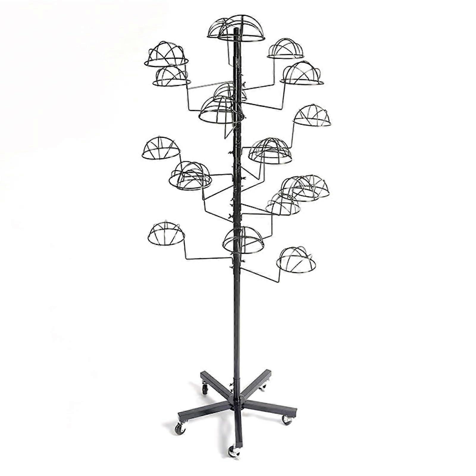 Hat Display Stand with 25 Hooks, Adjustable Height 360° Rotating Metal Hat Rack for Retail Store