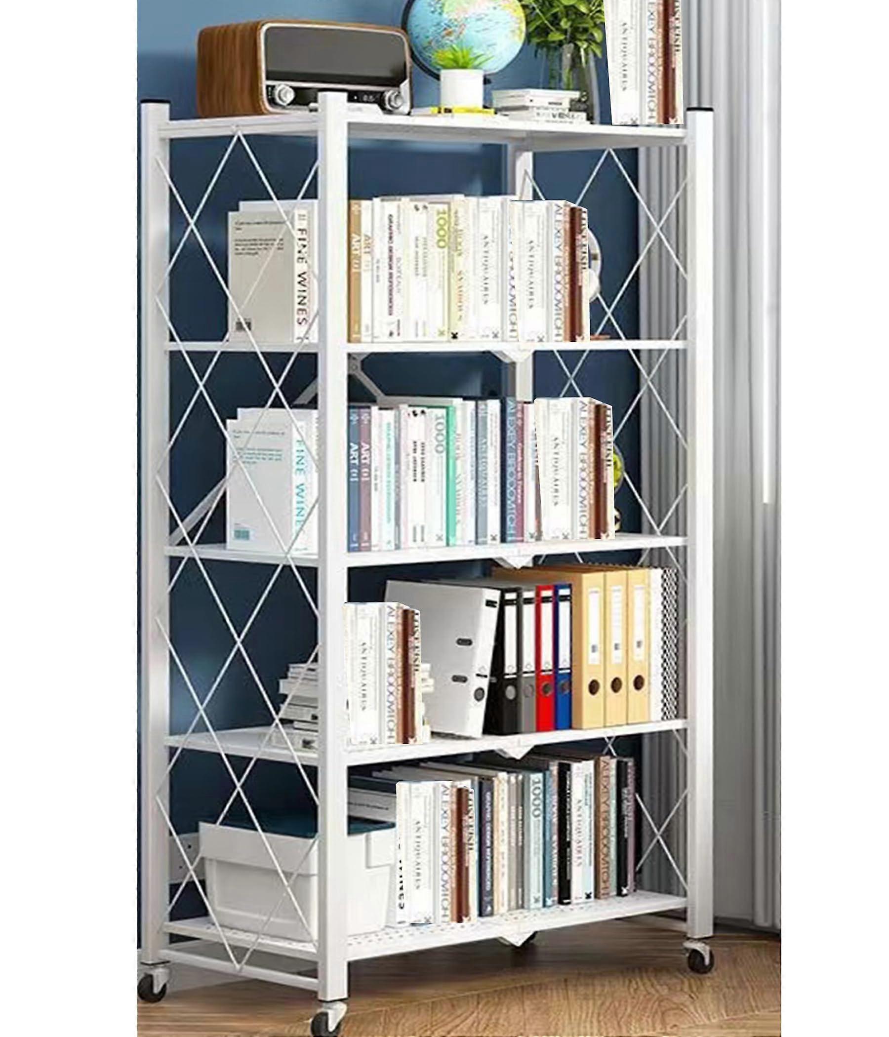 Metal Garage Shelving 5 Tier Heavy Duty Foldable Rolling Storage Rack White Space Saving