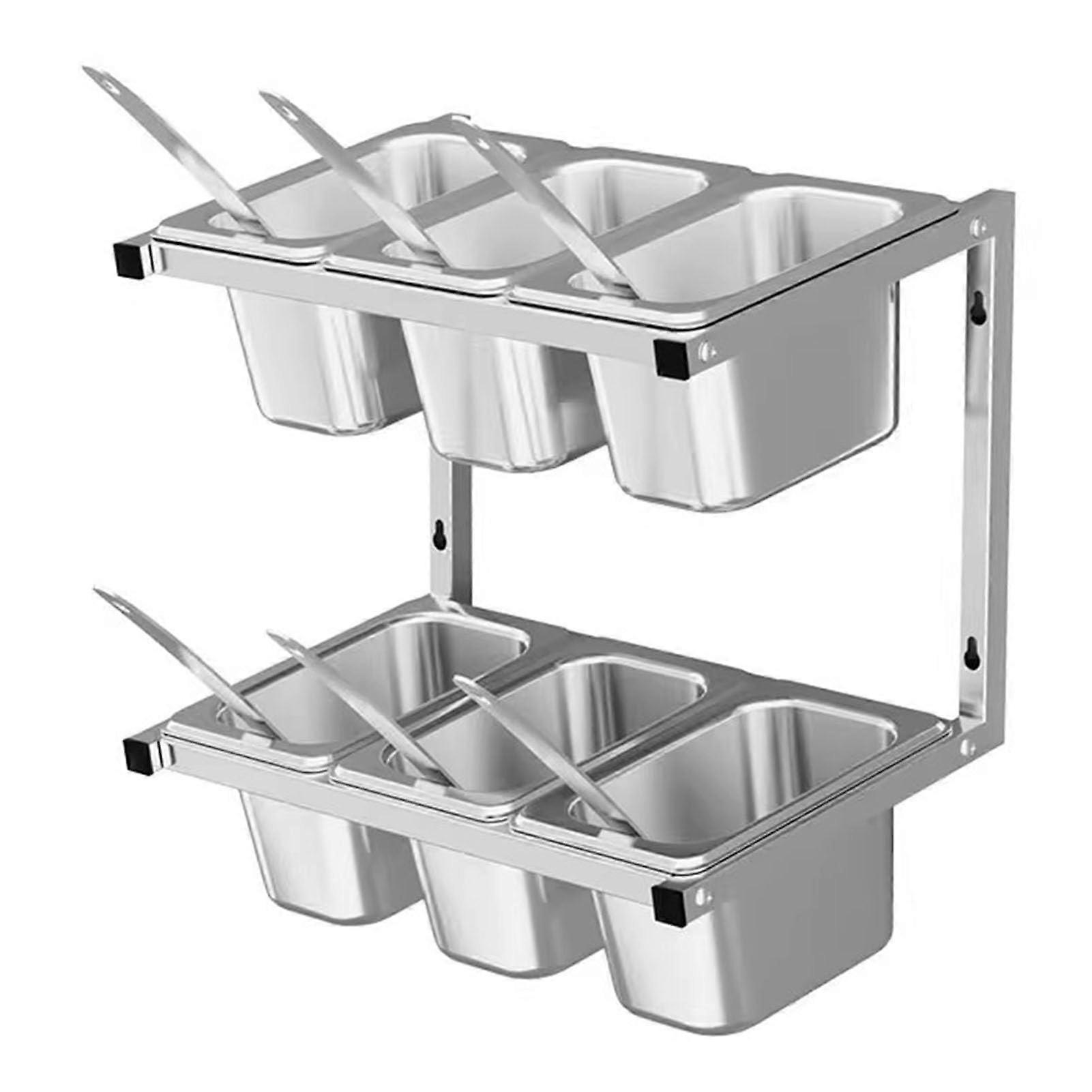 Stainless Steel Pizza Topping Station, Wall Mounted 2Tier 6Grid Kitchen Organizer for Restaurant