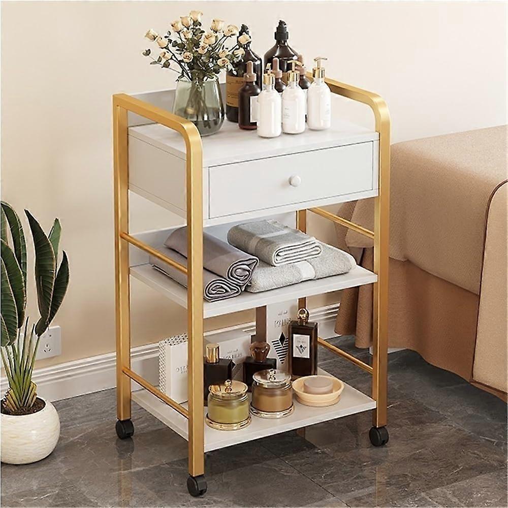 Gold 4Tier Rolling Utility Cart with Lockable Wheels, Compact Storage Organizer for Kitchen, Salon