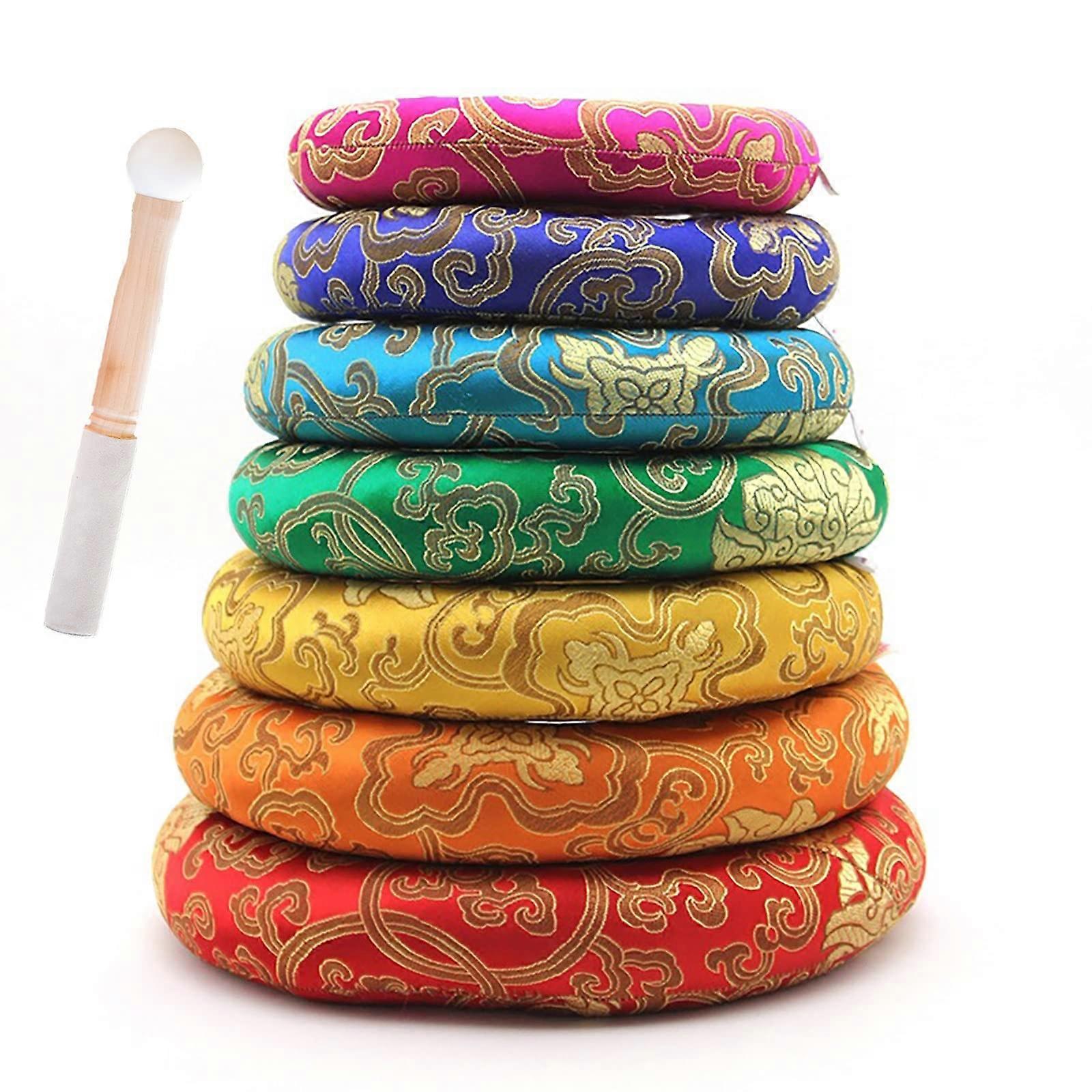 Tibetan Singing Bowl Cushion Silk Brocade Pad with Mallet, Colored Ring Mat 612 Inch