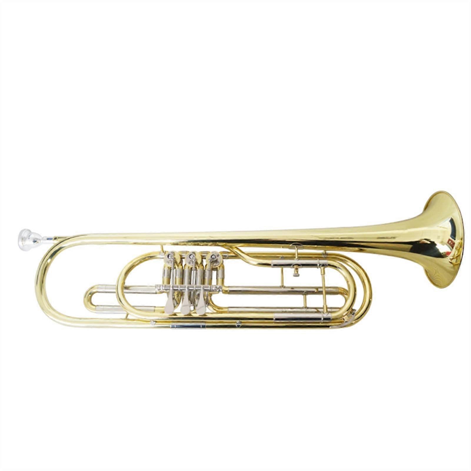 B Flat Bass Trumpet with Rotary Valves, Rich Low Brass Range, Durable Gold Lacquer Finish
