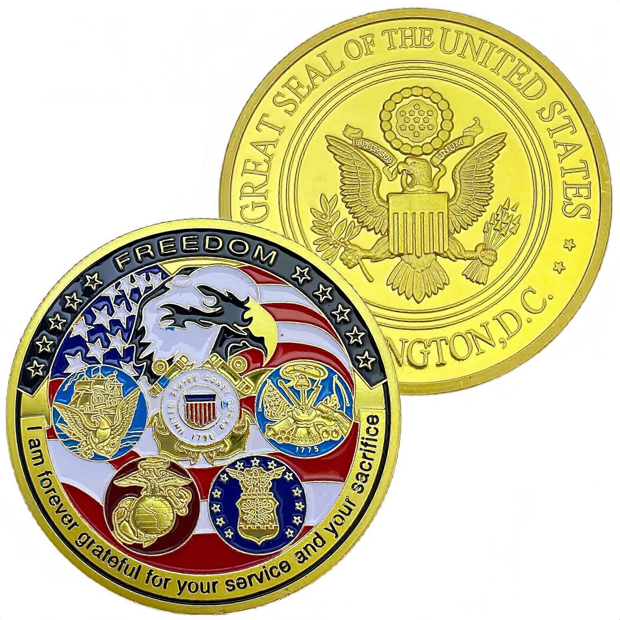 US Military Liberty Eagle Challenge Coin Navy Air Force Marine Corps Coast Guard with Case