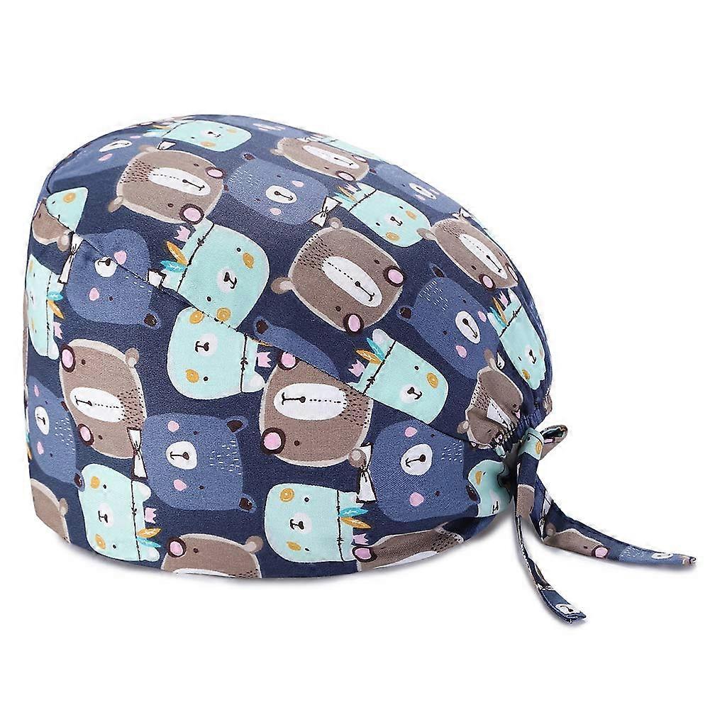 Adjustable Scrub Cap with Satin Lining and Sweatband, Breathable Cotton Bouffant Hat for Long Hair