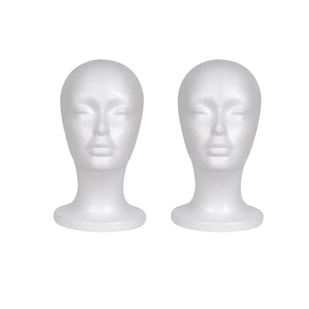 Foam Mannequin Head 2pcs White Styrofoam Wig Display Stand for Hats Hairpieces Salon Use