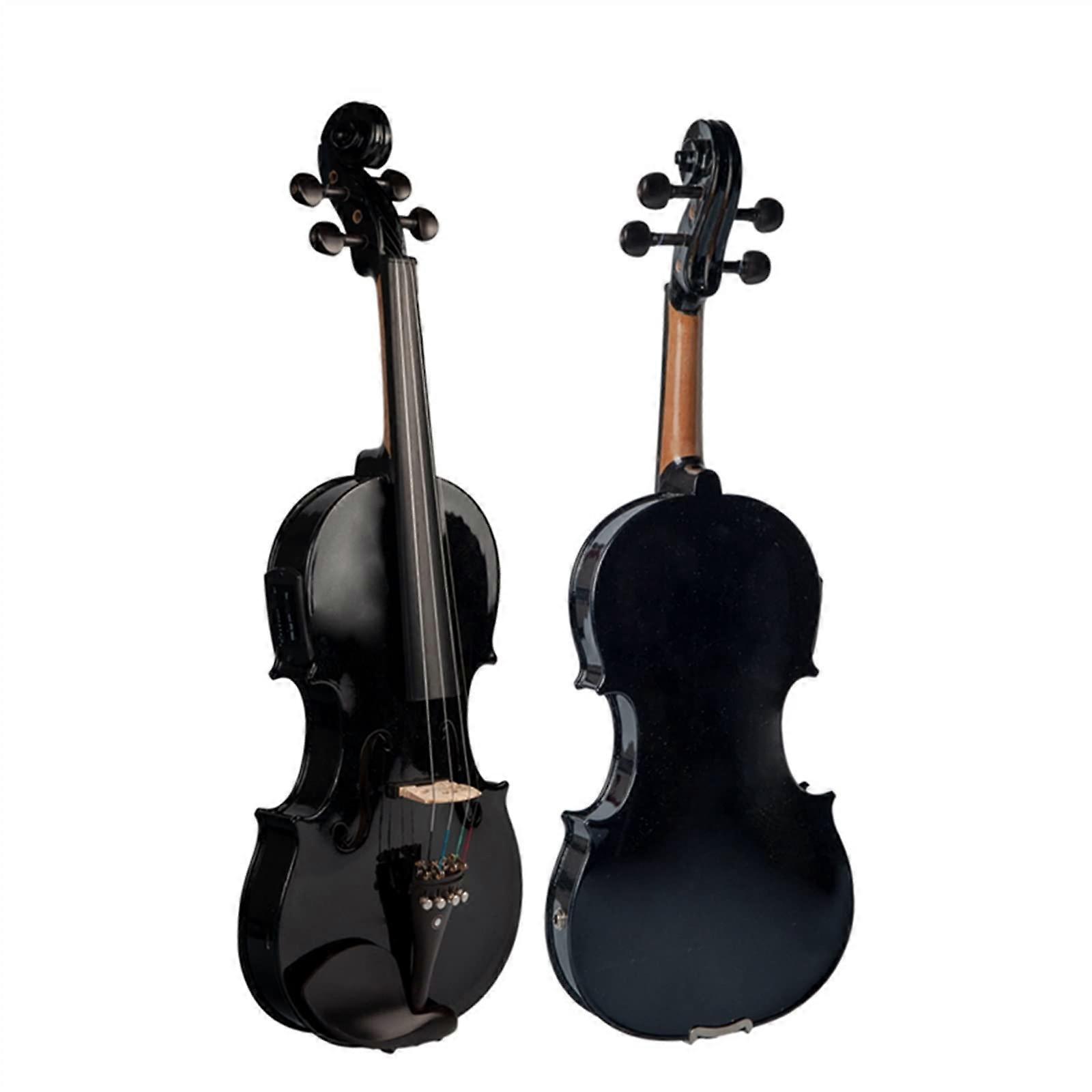 4/4 Full Size Electric Violin for Adults, Solid Wood Body, Ebony Fingerboard, Black with Accessories