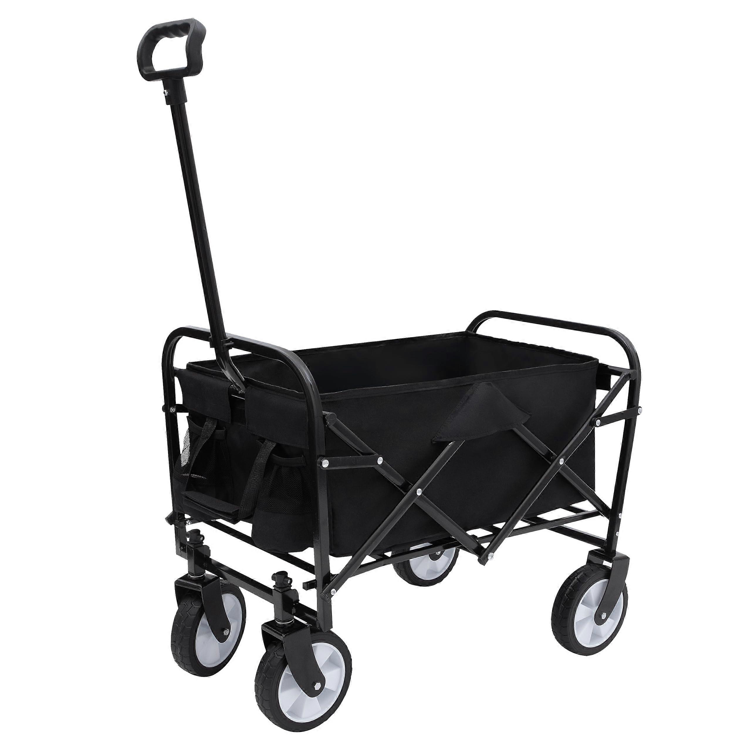 Heavy Duty Collapsible Utility Cart with 360° Swivel Wheels, DualLayer Storage, Black