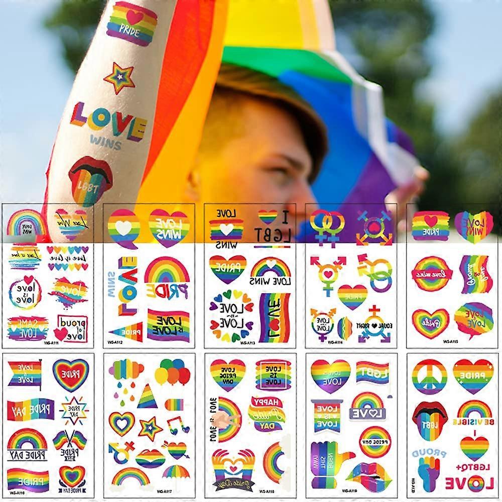 73 Pcs Rainbow Temporary Tattoos Waterproof Vibrant Colors for LGBT Pride Parade and Festival