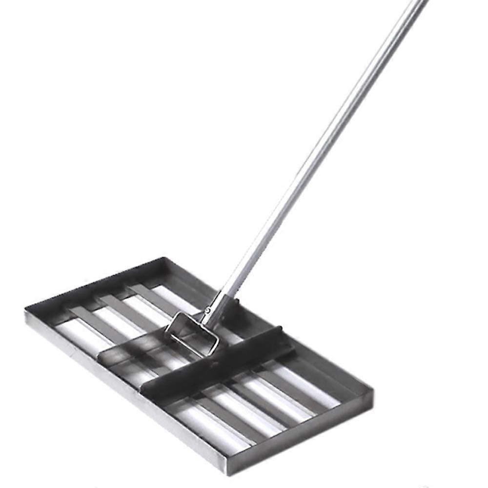 Garden Lawn Leveling Rake with 43 Inch Handle Heavy duty stainless steel head and largecapacity design for quicker, more consistent lawn and golf surface work Why this tool matters Achieve a smooth, even surface faster. The largecapacity stainless steel head moves more soil, sand, or topdressing per pass, reducing effort and time. Built for durability and stability. Heavy duty stainless steel resists bending under load and stands up to frequent use. Comfortable working reach. The 43 inch handle provides leverage for controlled scraping and spreading without excessive bending. Key features at a glance Function: Lawn leveling rake for smoothing soil, spreading topdressing, and preparing lawn or golf surfaces. Size: 43 inch handle for good reach and leverage; wide head for largecapacity material handling. Material: Heavy duty stainless steel head for strength and corrosion resistance. Performance: Wide, rigid head reduces number of passes needed for consistent results. How it solves common problems Uneven lawns: Smooths ruts, humps, and small holes so turf establishes more evenly after seeding or . Timeconsuming spreading: Wide head and large capacity let you spread soil, sand, or granular topdressings more quickly with fewer trips. Fragile tools that bend: Heavy duty stainless steel construction maintains shape and function under regular load. Practical applications Lawn renovation: Level seeded areas and blend topsoil for consistent seedtosoil contact during lawn . Topdressing and maintenance: Spread sand or soil across turf or practice areas to improve surface uniformity without repeated passes. Golf and sports surfaces: Smooth and prepare tees, fairway patches, and practice greens for consistent playability. What you will notice during use Fewer passes to cover the same area thanks to the wide, largecapacity head. Stable handling and improved control due to the 43 inch handle length and rigid construction. Reliable, longterm performance from the heavy duty stainless steel head. Simple care and maintenance Rinse off soil and debris after use and store in a dry area to maintain appearance and function. Inspect for loose fasteners periodically and tighten as needed to preserve tool stability. Who should consider this tool Homeowners renovating or maintaining medium to large lawns. Groundskeepers and golf course staff needing a sturdy leveling tool for routine surface work. Landscapers who want a versatile rake for spreading and smoothing soil and topdressing. Specifications summary Tool type: Lawn leveling rake Handle length: 43 inches Head material: Heavy duty stainless steel Capacity: Largecapacity head for efficient spreading and leveling Typical uses: Lawn leveling, topdressing, golf surface preparation This garden lawn level is designed to deliver consistent results with durable construction and a practical handle length to reduce fatigue. Use it to level, spread, and finish lawn and golf surfaces with better efficiency and control.