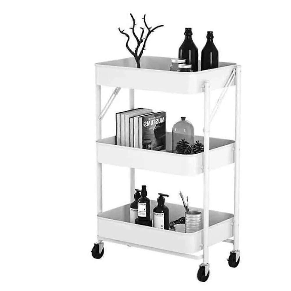 3 Tier Metal Rolling Storage Cart with Foldable Design and Wheels for Office Bathroom Space Saving