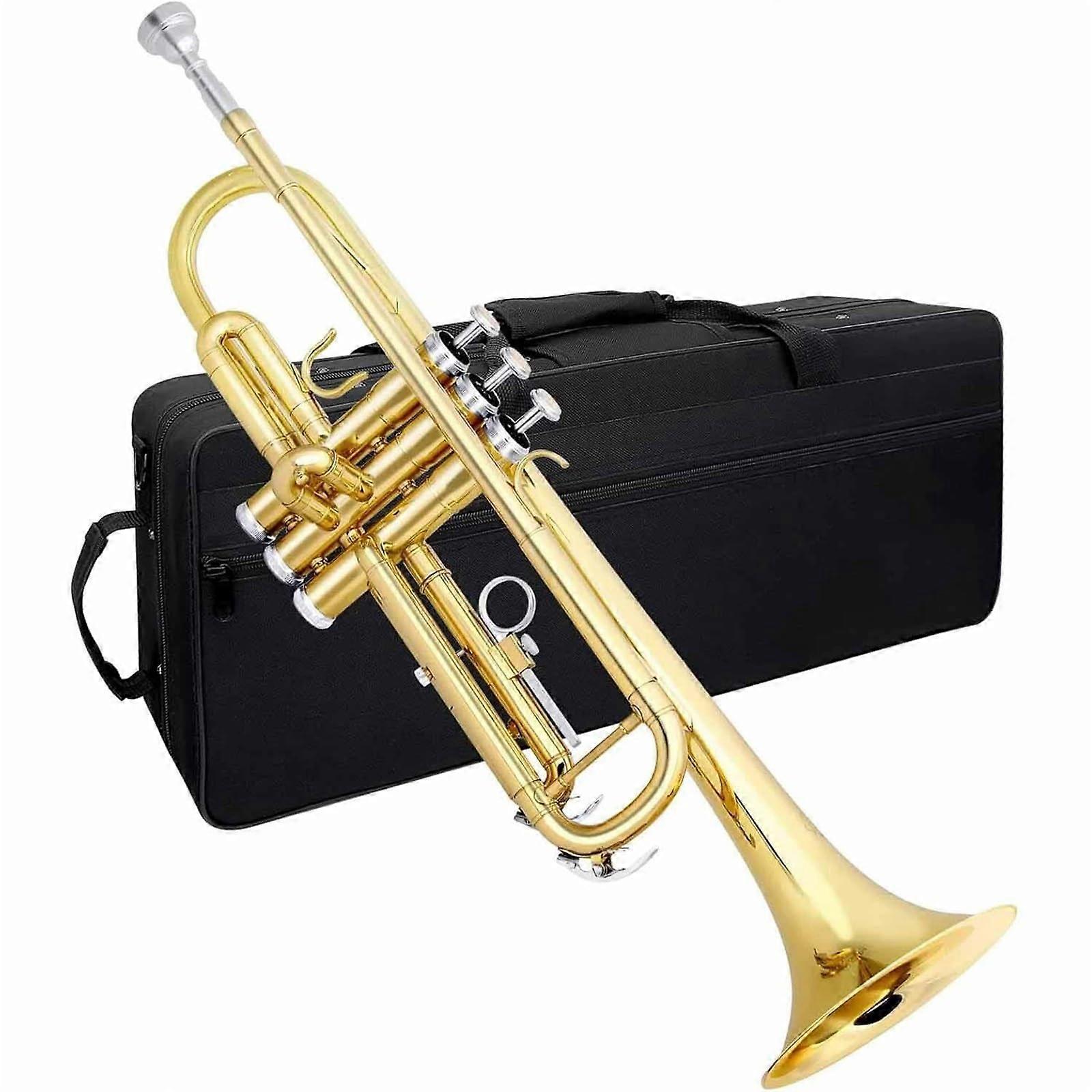 Bb Trumpet for Beginners Gold Plated Brass with Case Rich Tone and Smooth Valve Action