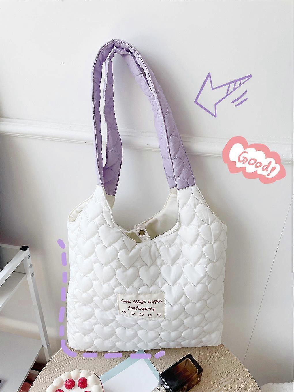 Creamy Style Large Capacity Color Block Heart Quilting Women's Canvas Underarm Bag For College Students