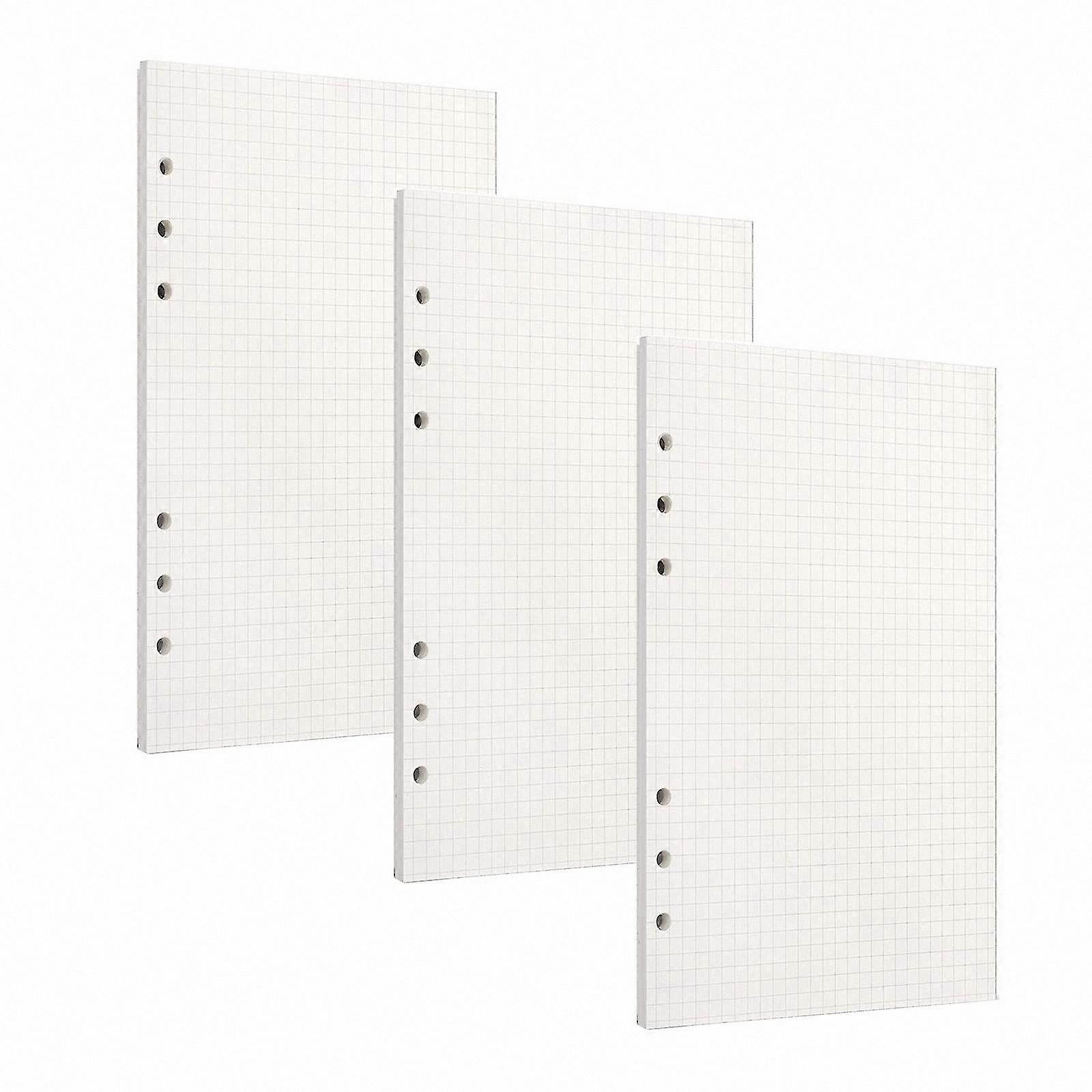 A6 Squared Grid Refill Paper, 3 Packs of 135 Sheets, 6-Hole Inserts for Organizers, Compatible with A6 Checked Notebooks