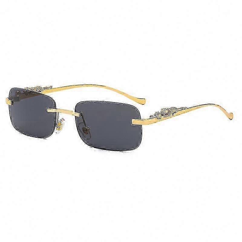 Vintage Rectangle Frameless Sunglasses with Leopard Head Design for Women and Men