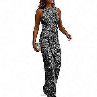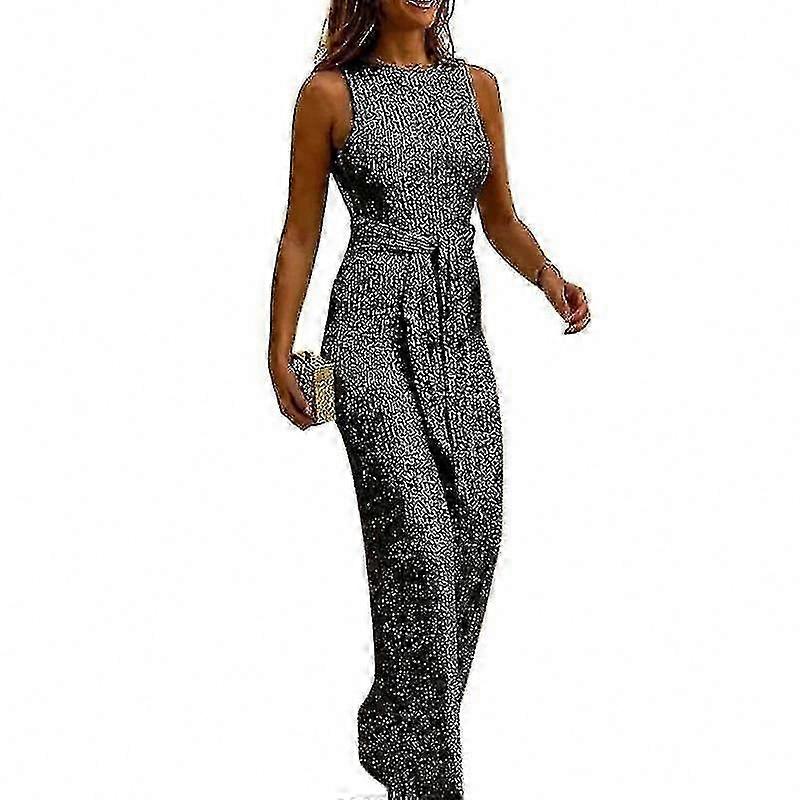 Sleeveless Sparkle Jumpsuit for Women with Belted Long Pants