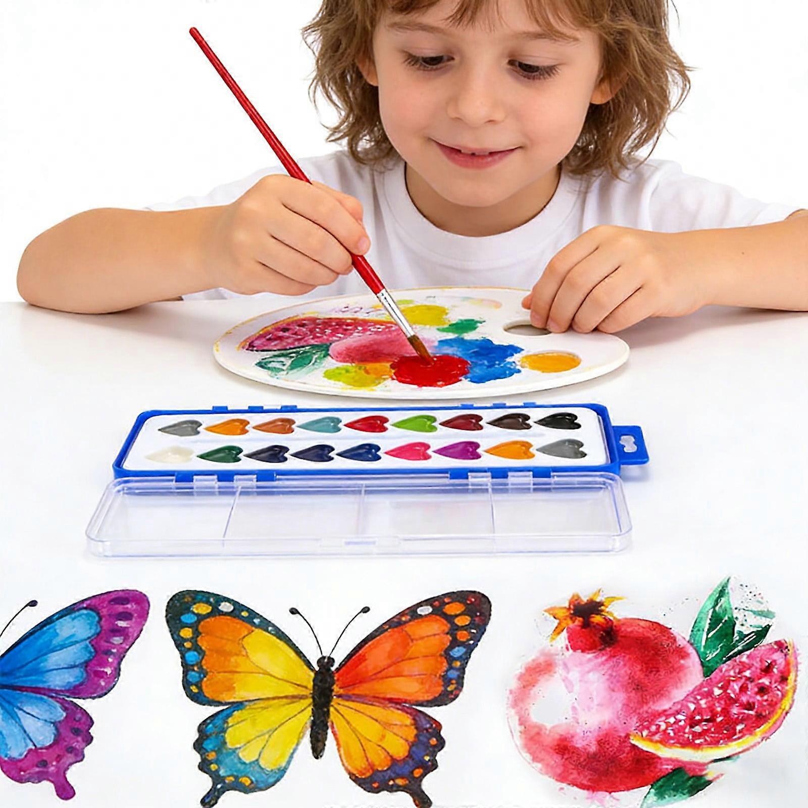 Product Description Celebrate creativity and heartfelt moments with this Valentine’s Day Heart-Shaped Watercolor Paint Set, designed for art lovers, hobby painters, and festive DIY activities. Each compact set features 16 vibrant watercolor shades, carefully balanced between rich dark tones and soft light hues, allowing for expressive blending, shading, and artistic exploration. The charming heart-shaped design adds a festive Valentine’s touch, making this watercolor palette ideal for seasonal crafts, creative exchanges, classroom activities, party favors, or thoughtful handmade gifts. Each set includes a quality paintbrush and a writable gift tag, allowing you to personalize messages, blessings, or creative notes for friends, classmates, coworkers, or art enthusiasts. Lightweight and travel-friendly, this watercolor paint set is easy to carry in bags, drawers, or art kits, making it perfect for painting sessions at home, in studios, outdoors, or during travel. The transparent protective lid cleverly doubles as a mixing palette, providing a smooth surface for blending colors without the need for extra tools. The washable watercolor formula ensures easy cleanup from hands, tables, and most surfaces, offering a worry-free painting experience. Available in a bulk value pack, this set is well-suited for group activities, seasonal events, art workshops, classroom exchanges, and Valentine’s Day celebrations where creativity and sharing take center stage. Key Features / Bullet Points 16 Vibrant Watercolor Shades – Includes a balanced mix of dark and light colors for blending, shading, and creative expression Heart-Shaped Valentine Design – Festive and eye-catching palette ideal for seasonal crafts and themed art activities Compact & Portable Set – Lightweight size fits easily in bags, desks, or art organizers for on-the-go creativity Lid Converts to Mixing Palette – Transparent cover doubles as a color-mixing surface, reducing extra tools Washable & Easy to Clean – Water-based paints rinse easily from hands and most surfaces Bulk Value Pack – Ideal for classroom exchanges, group events, art parties, and creative workshops Product Details Type: Heart-Shaped Watercolor Paint Set Paint Colors: 16 assorted washable watercolor shades Included Accessories: Paintbrush, writable gift tag, hanging rope Material: Plastic palette with water-based paint Design Feature: Transparent lid functions as mixing palette Quantity Options: Bulk pack available Use: Art painting, DIY crafts, Valentine’s Day activities, party favors 16 Vibrant Watercolor Shades – Includes a balanced mix of dark and light colors for blending, shading, and creative expression Heart-Shaped Valentine Design – Festive and eye-catching palette ideal for seasonal crafts and themed art activities Compact & Portable Set – Lightweight size fits easily in bags, desks, or art organizers for on-the-go creativity Lid Converts to Mixing Palette – Transparent cover doubles as a color-mixing surface, reducing extra tools Washable & Easy to Clean – Water-based paints rinse easily from hands and most surfaces