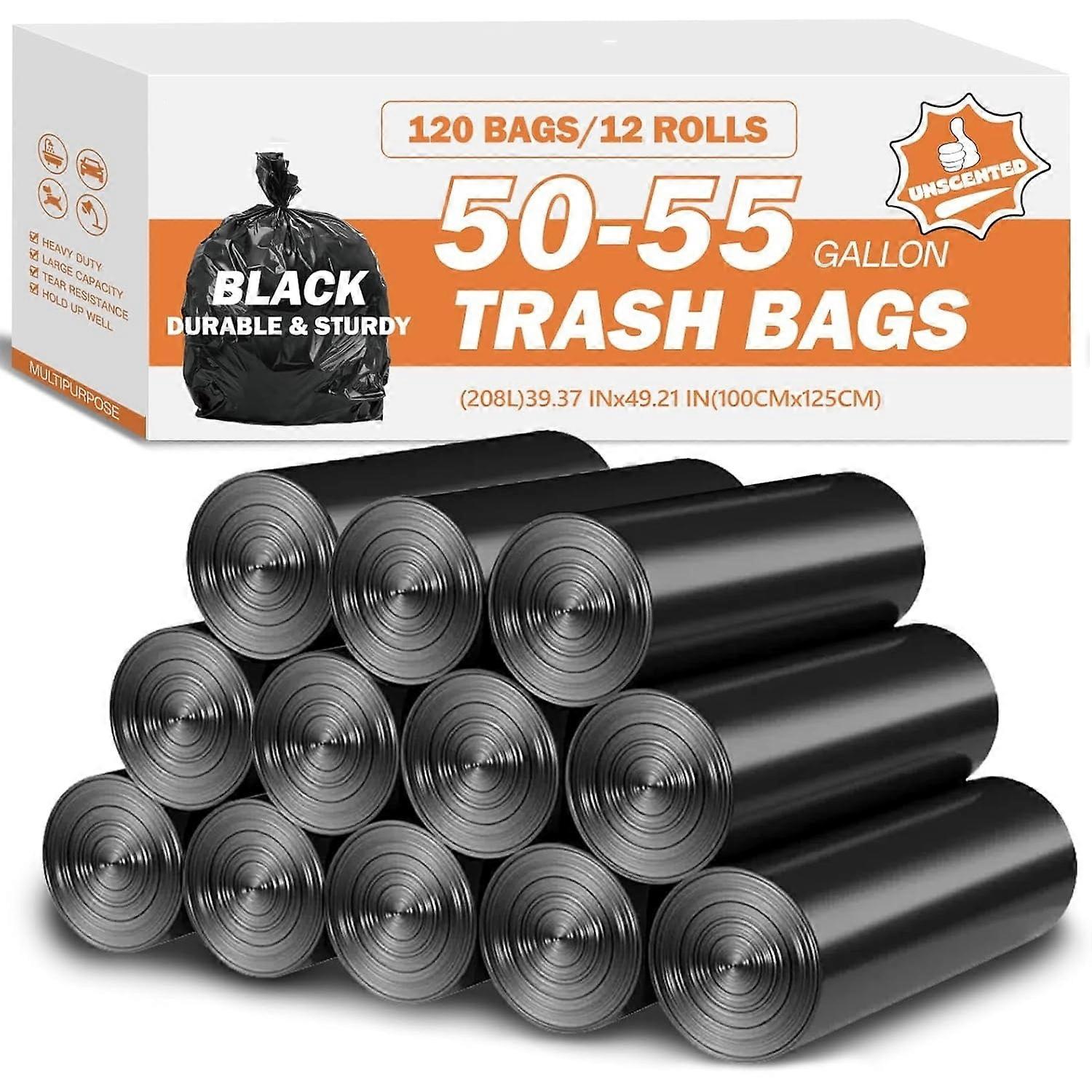 50-55 Gal Black Trash Bags (120ct, 40"x50") – Extra Large, Unscented, Heavy-Duty Liners for Construction, Industrial & Outdoor Use
