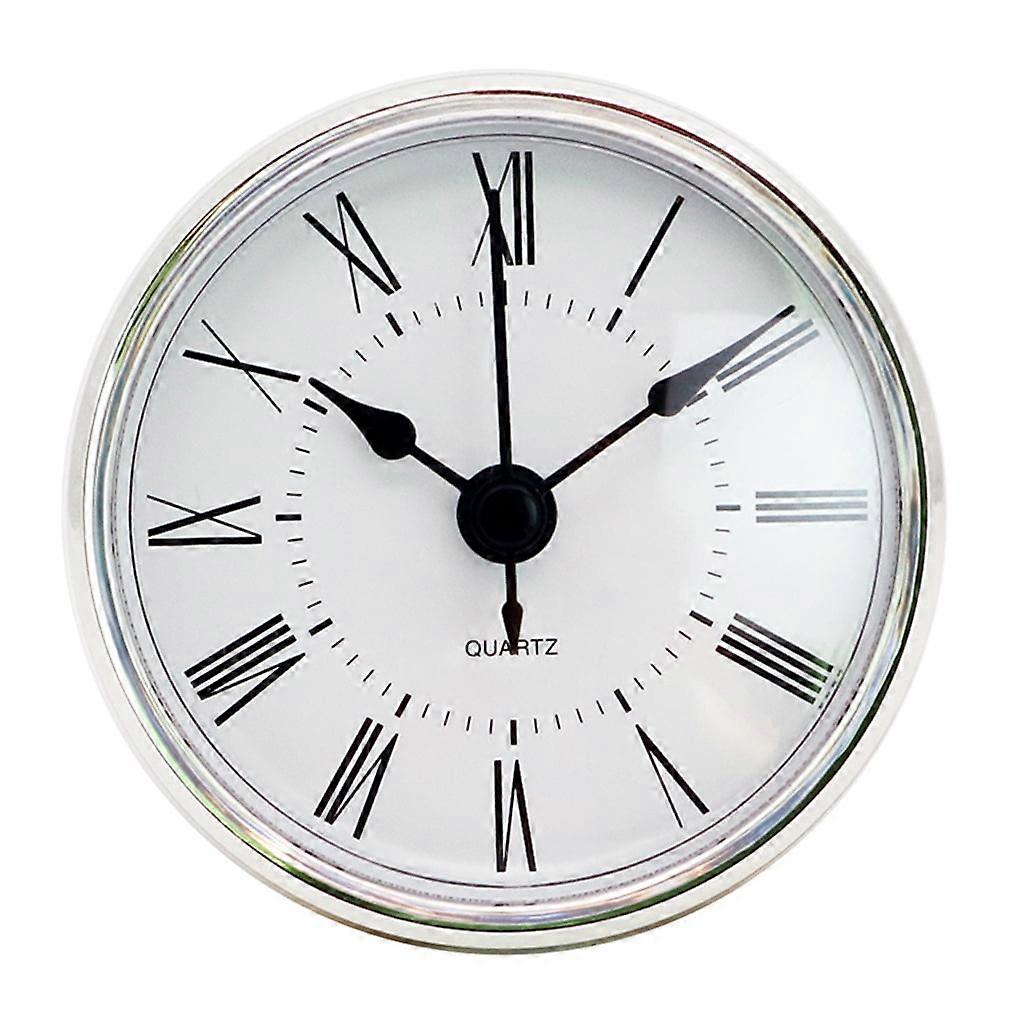 2.8Inch/70mm Clock Insert Round Movement Clock White Face Silver Tone Bezel Roman Numeral Fit 63mm Diameter Hole