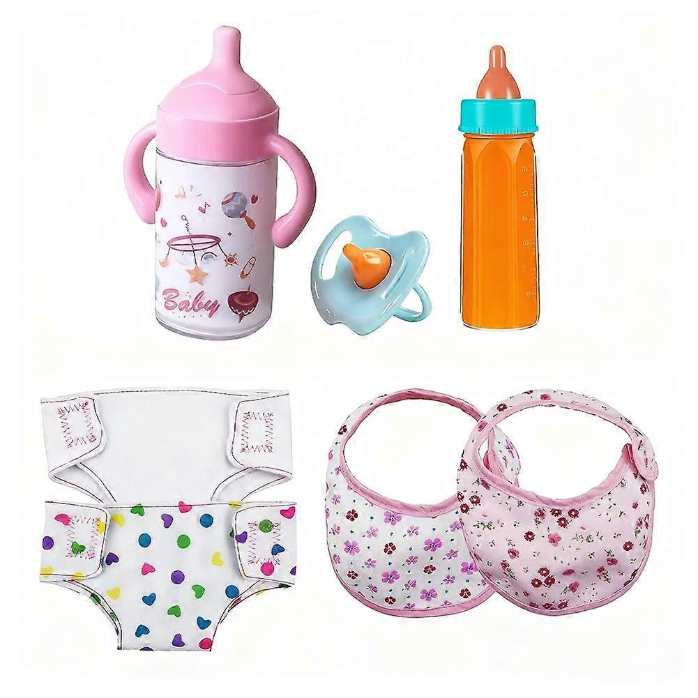 7 Pcs Baby Doll Accessories Set Include Disappearing Milk and Juice Bottles, Pacifier, Bibs, Diapers,Baby Doll Feeding Set, Dolls Pretend Play Gifts