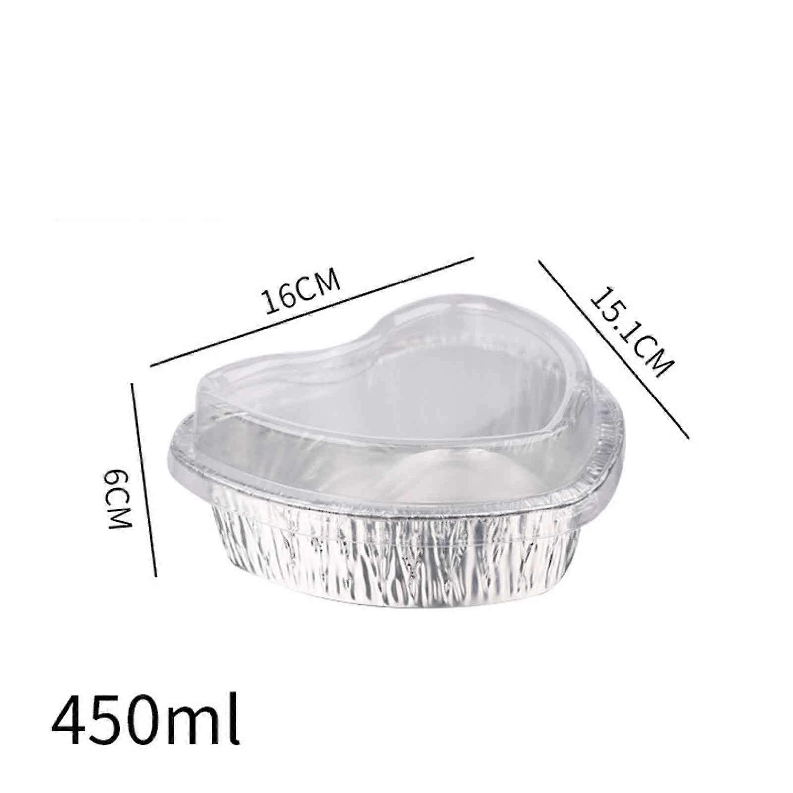 Aluminum Foil Heart Shaped Tin Foil Box, Disposable Egg Container, for Family Restaurant Baking Dessert Cake, J