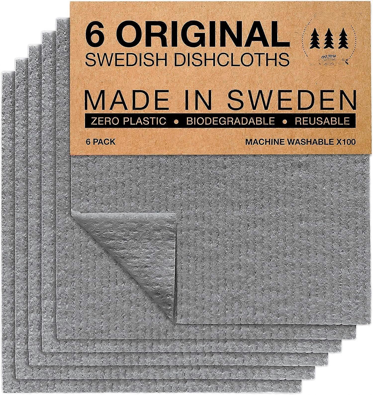 6 Swedish Dishcloths for Kitchen - Biodegradable & Paper Towels Washable, -Safe & Without - Dish Rags Suitable for Any Surface, Grey